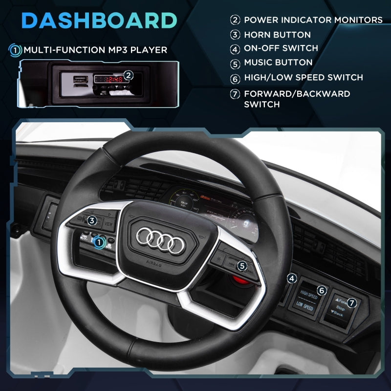 AUDI E-tron ride on: A licensed Audi E-tron kids ride on car with LED lights, seatbelt, steering wheel and horn - feels like driving a real car.