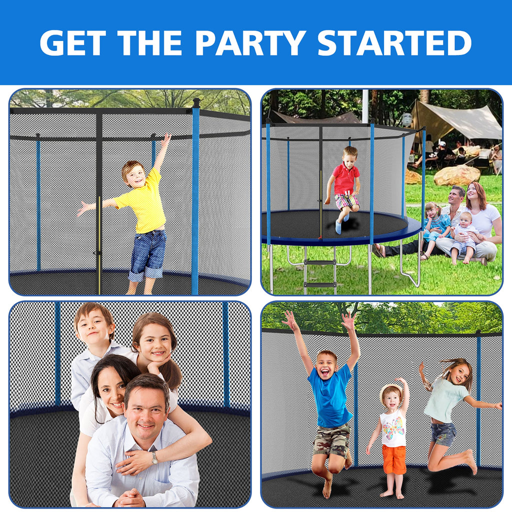 Trampoline 8-12FT Adjustable, Safety Enclosure Net & Spring Pad, Heavy-Duty Galvanized Steel Frame, 400lbs Capacity, Blue