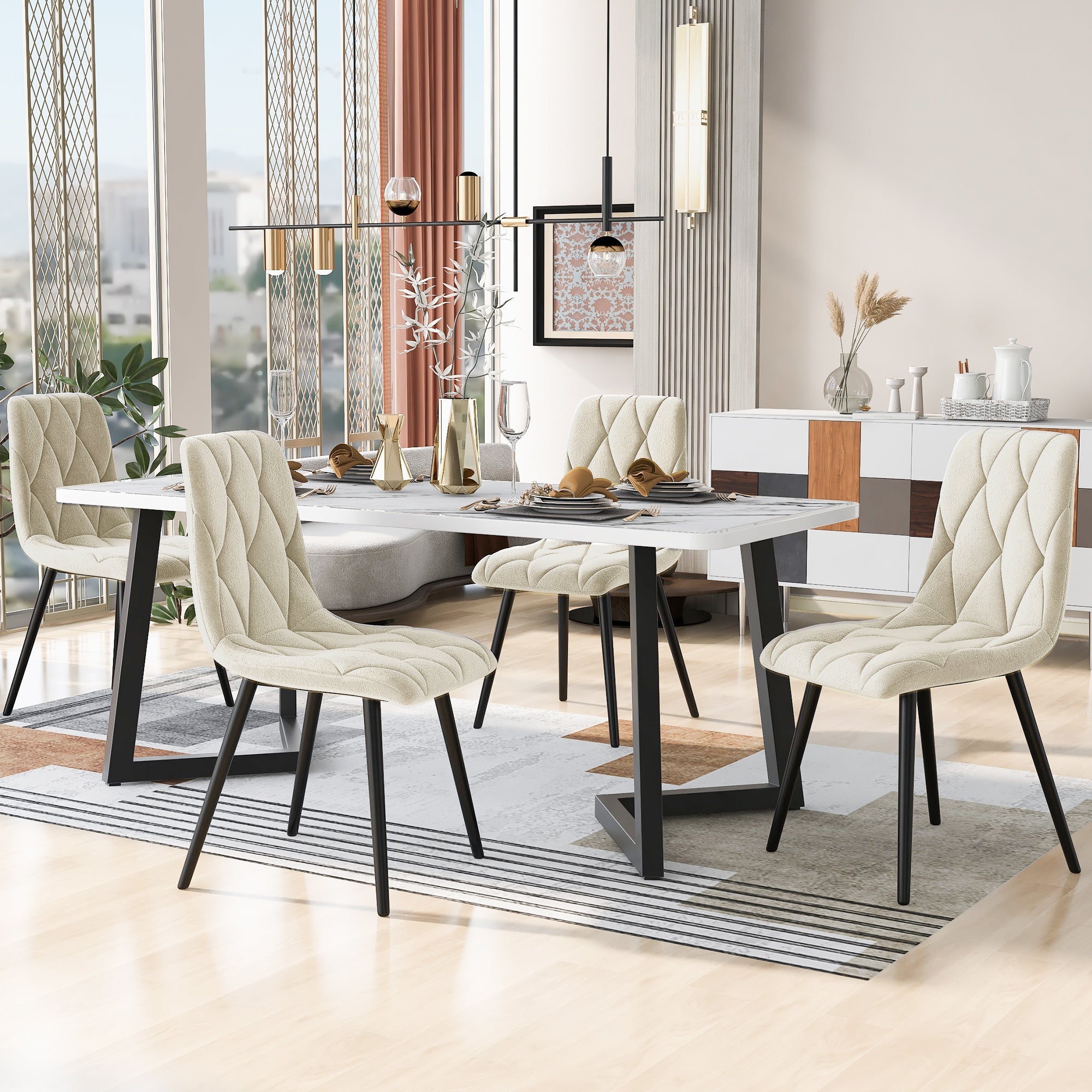 Dining Set 117x68cm Rectangular Table 4 Chairs - Beige Twill Velvet/Black Legs