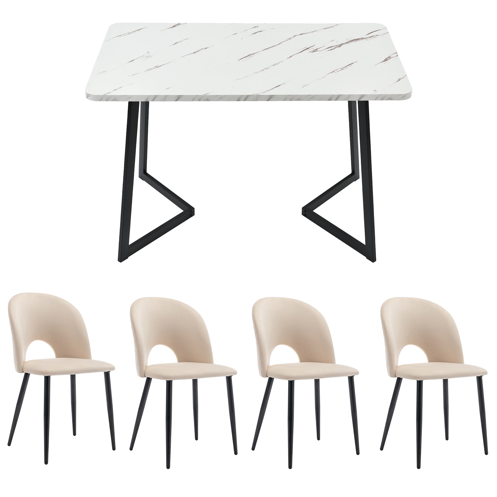 Enjoy life's luxurious moments, from breakfast to dinner. Velvet dining chairs and an MDF tabletop offer you the ultimate in enjoyment at every meal. The perfect combination of artistry and functionality transforms this furniture from mere furnishings into exquisite statements of your lifestyle. A table and four chairs together create a new dimension of living. Let comfort and elegance become indispensable elements of your home. High-quality living is literally in your hands. Choose quality, choose sophistication, choose the extraordinary.