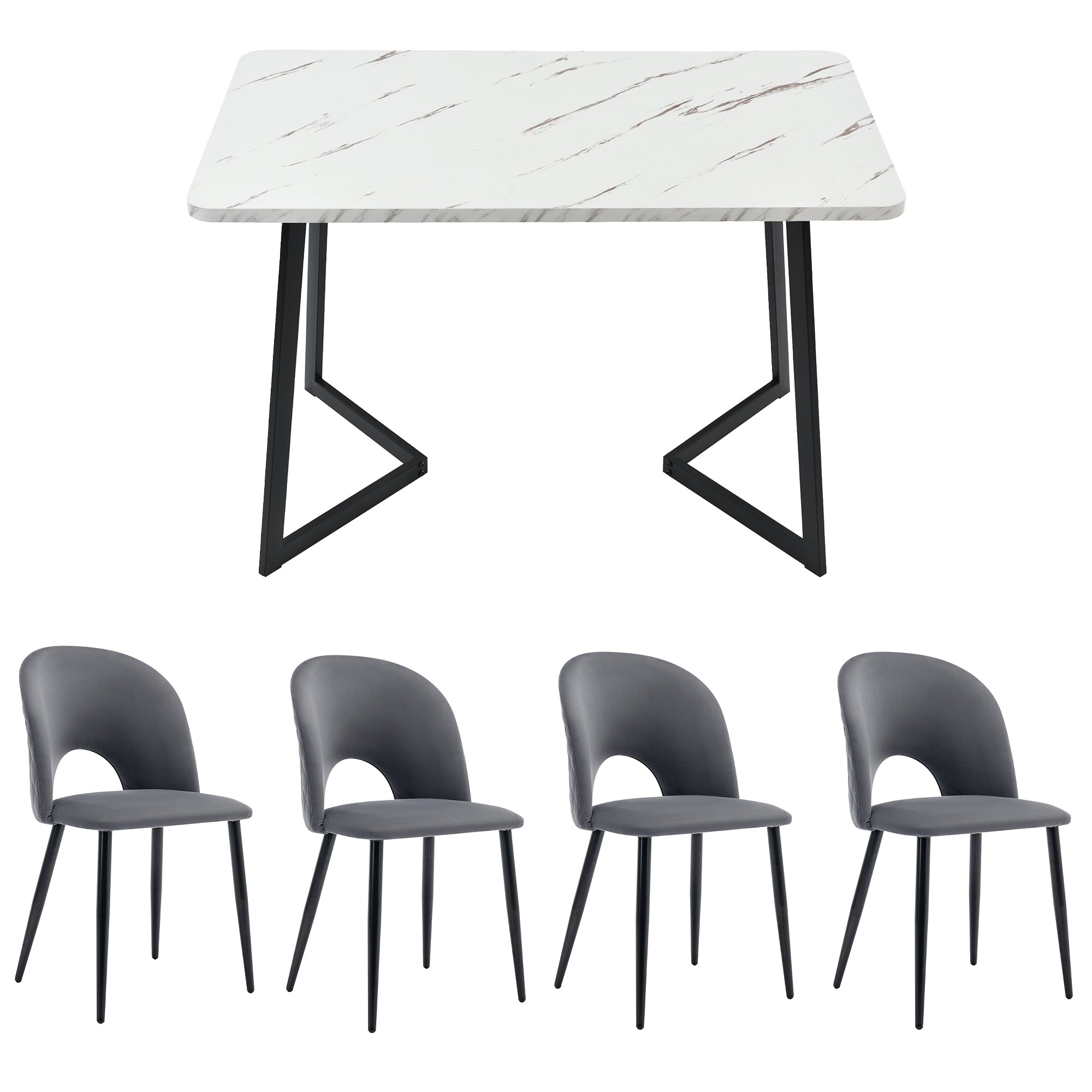 Dining Set (117x68cm Table & 4 Chairs), Rectangular Modern Kitchen Table, Velvet Diamond Pattern Chairs, Grey Velvet/Black Legs