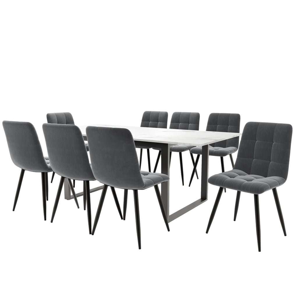 Dining Set, 140/180x80x75cm with 8 Grey Velvet Chairs, White MDF & Black Legs