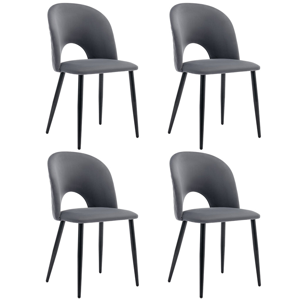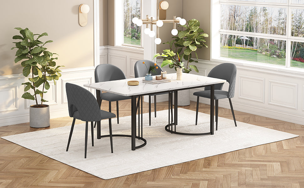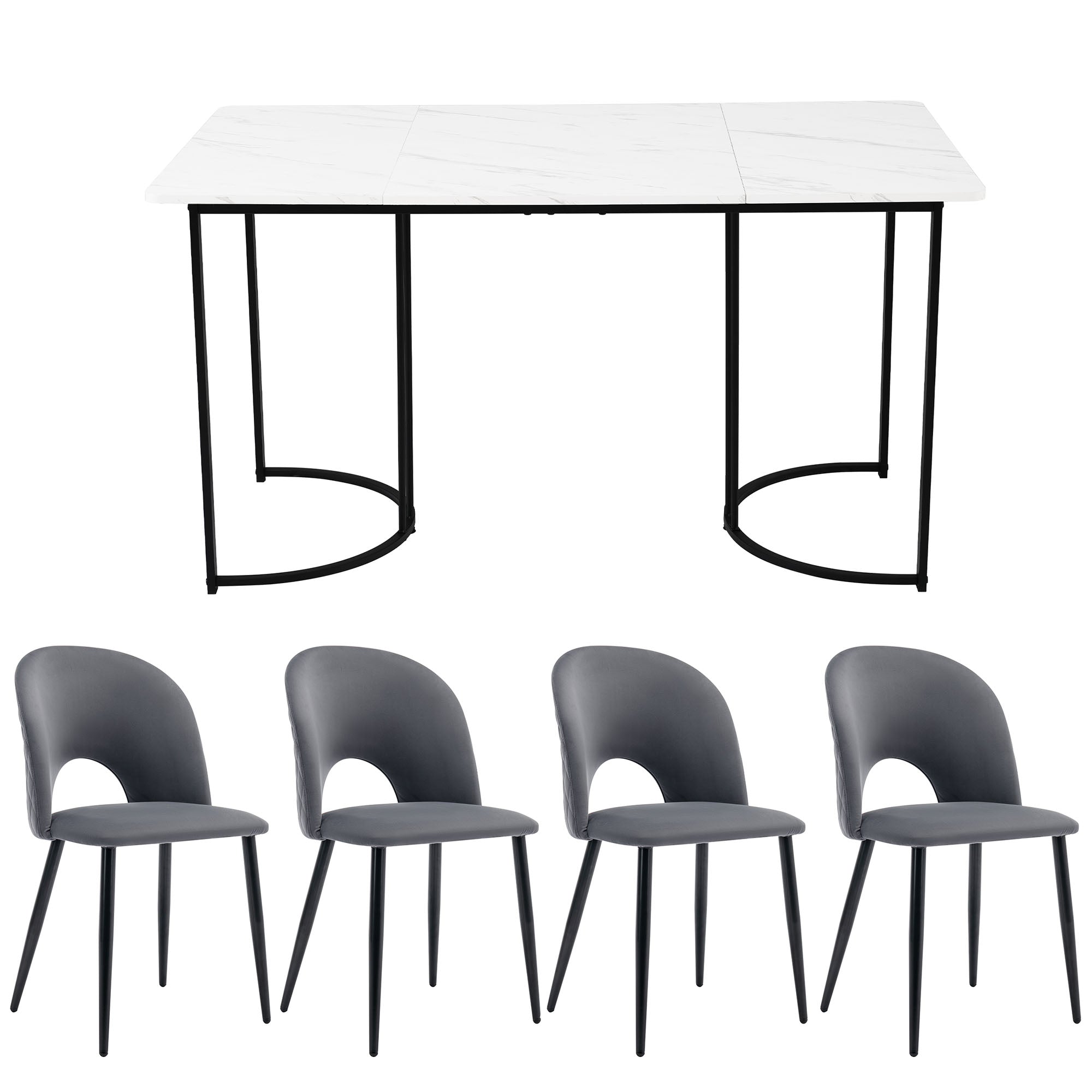 Dining Set, 140x80cm with 4 Chairs, Velvet, Gray/White/Black
