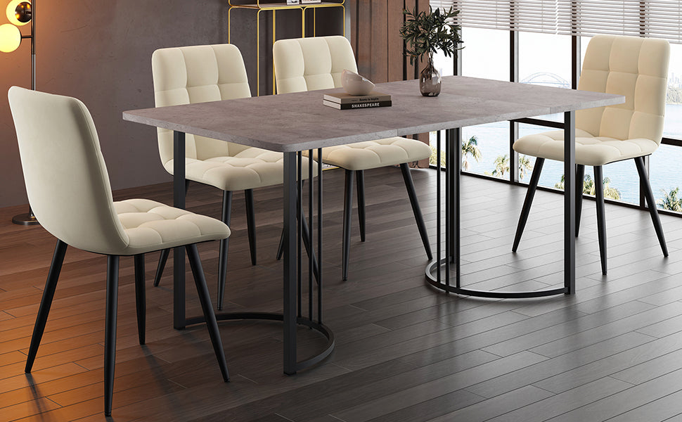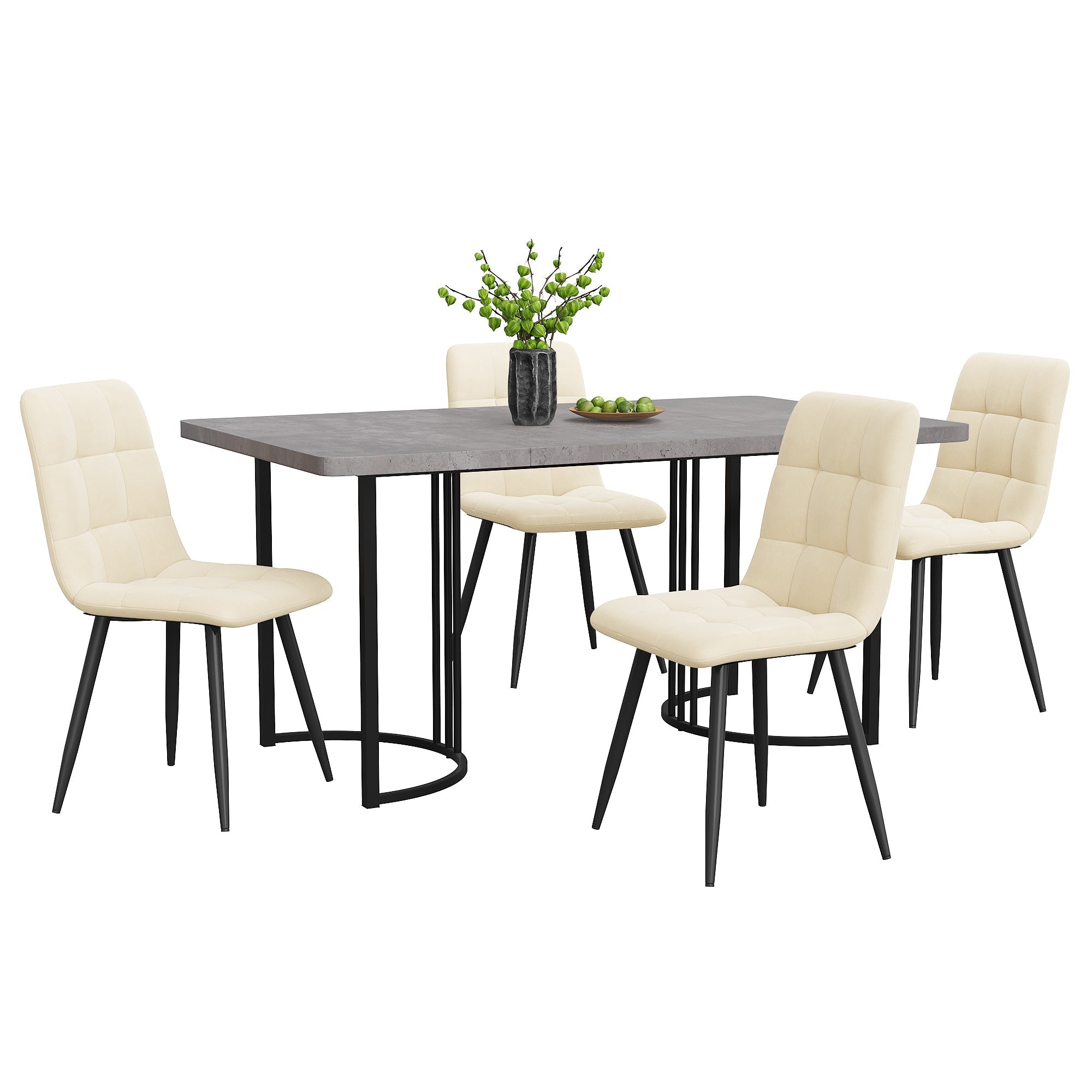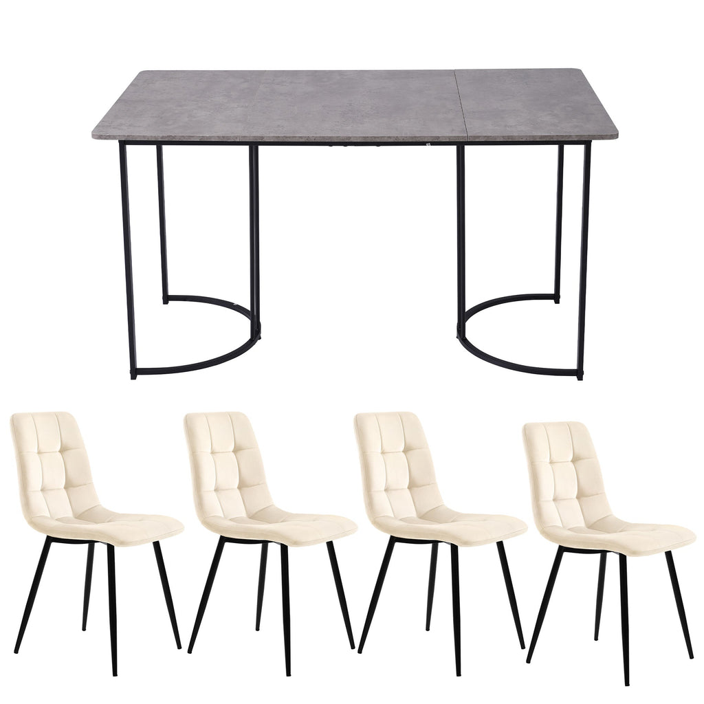 Dining Set, 5-Piece 140x80cm Kitchen Table with 4 Chairs, Grey MDF & Beige Velvet