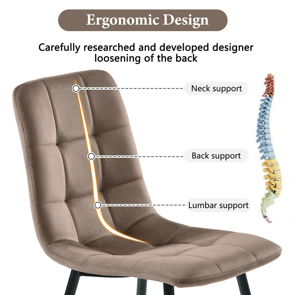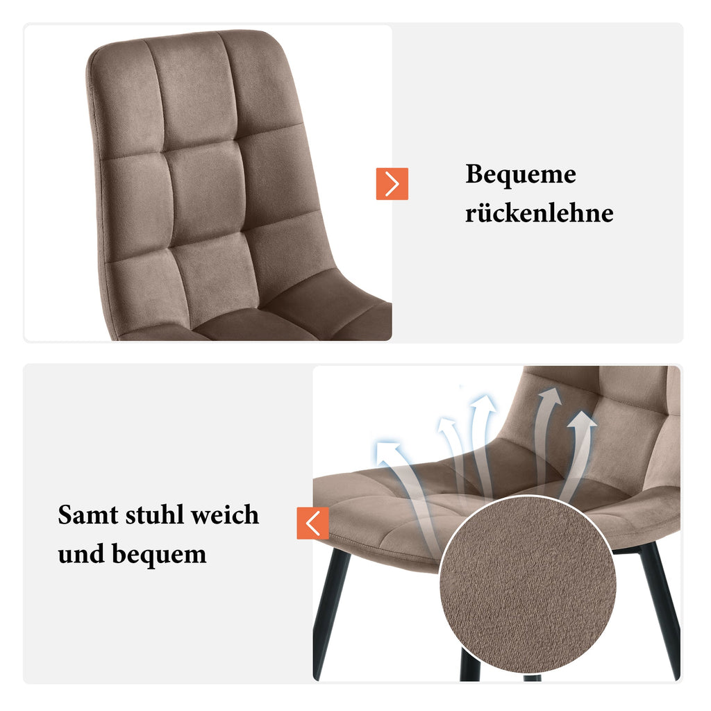 The chairs feature velvety soft upholstery, with a seat width of 44 cm and a seat depth of 41 cm to ensure maximum comfort and optimal support. The soft, breathable velvet fabric will transport you to a state of heavenly tranquility.