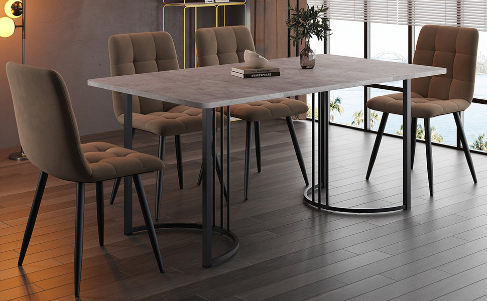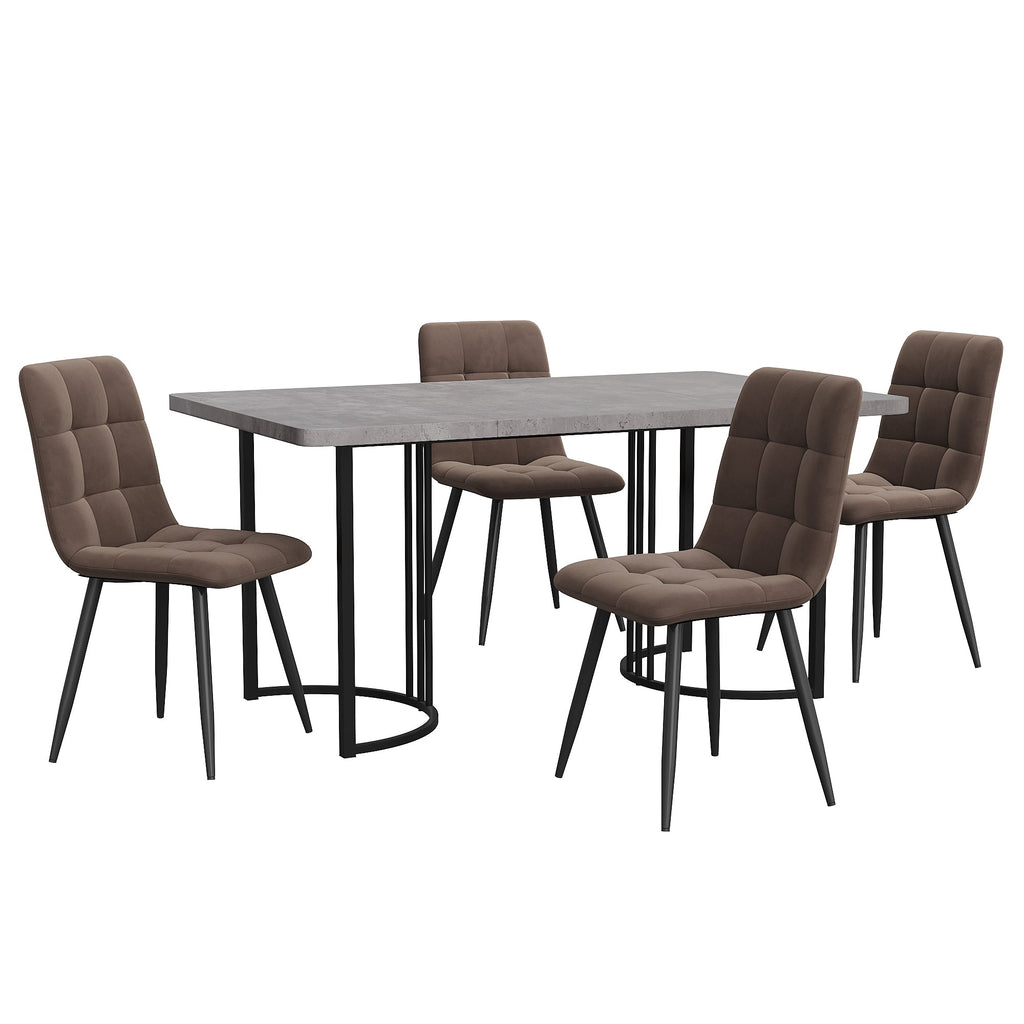 Dining Set 5-Piece, 140×80cm Table with 4 Chairs, Grey MDF & Brown Velvet