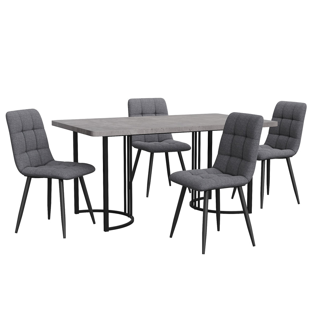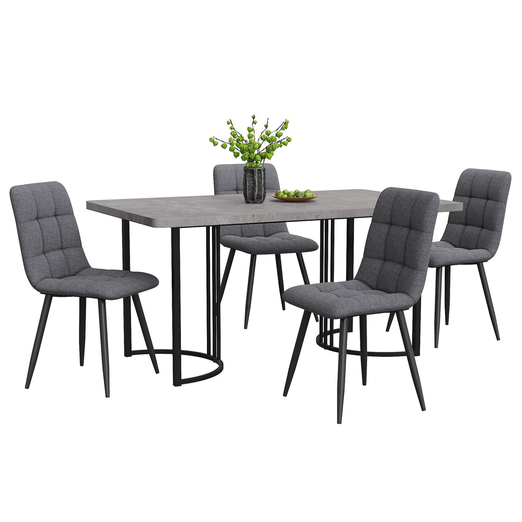 Dining Set, 5-Piece 140x80cm with 4 Chairs, Grey MDF & Dark Grey Linen
