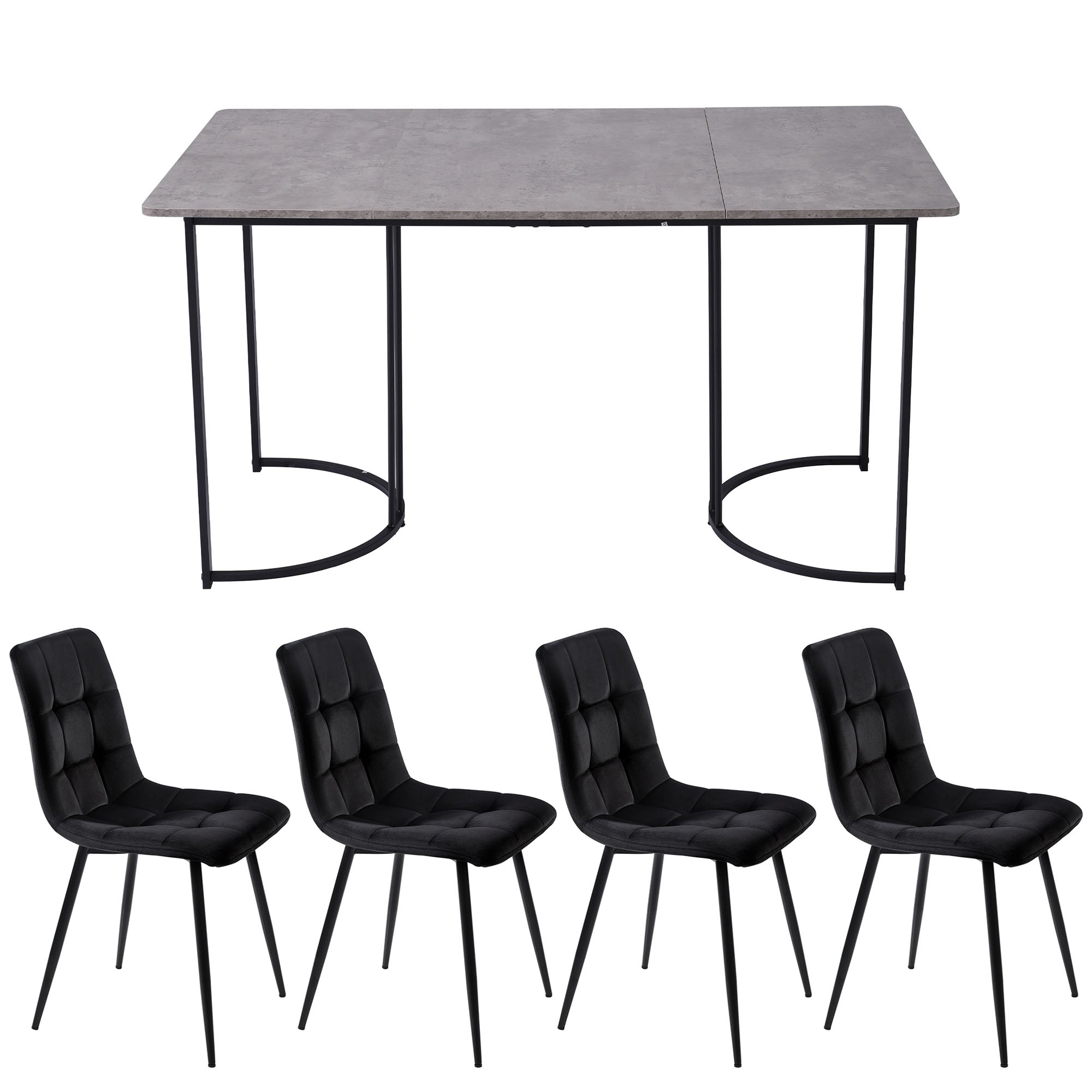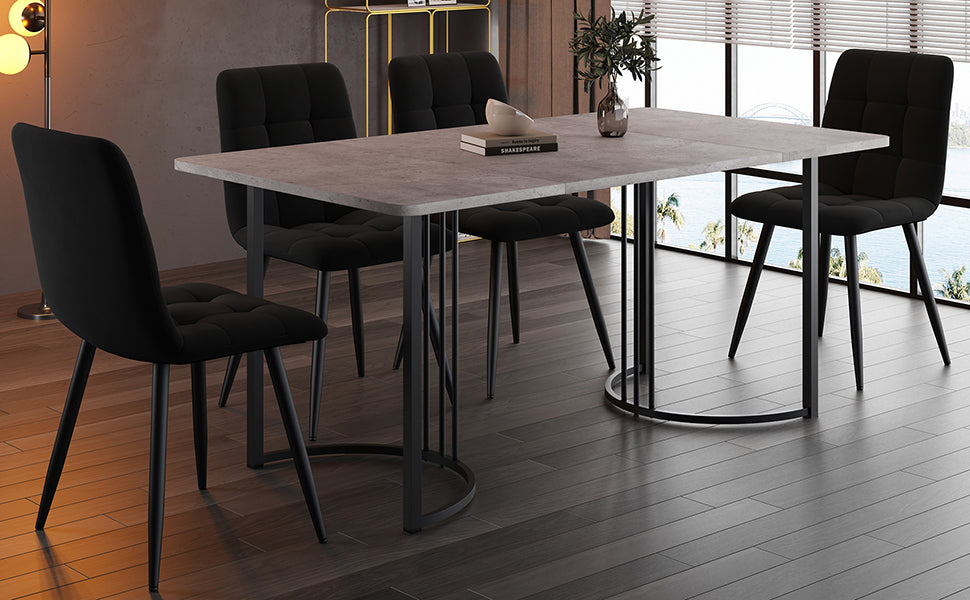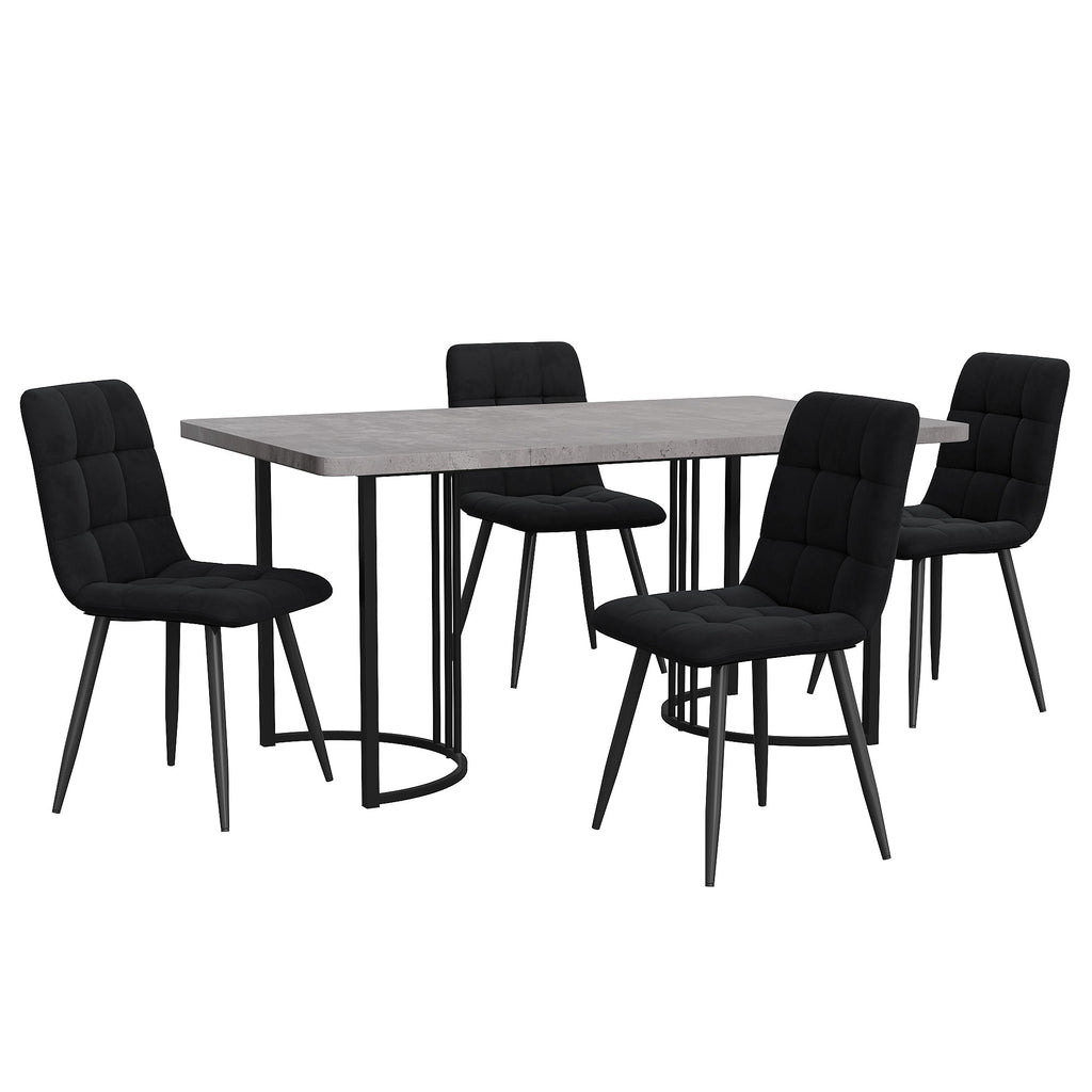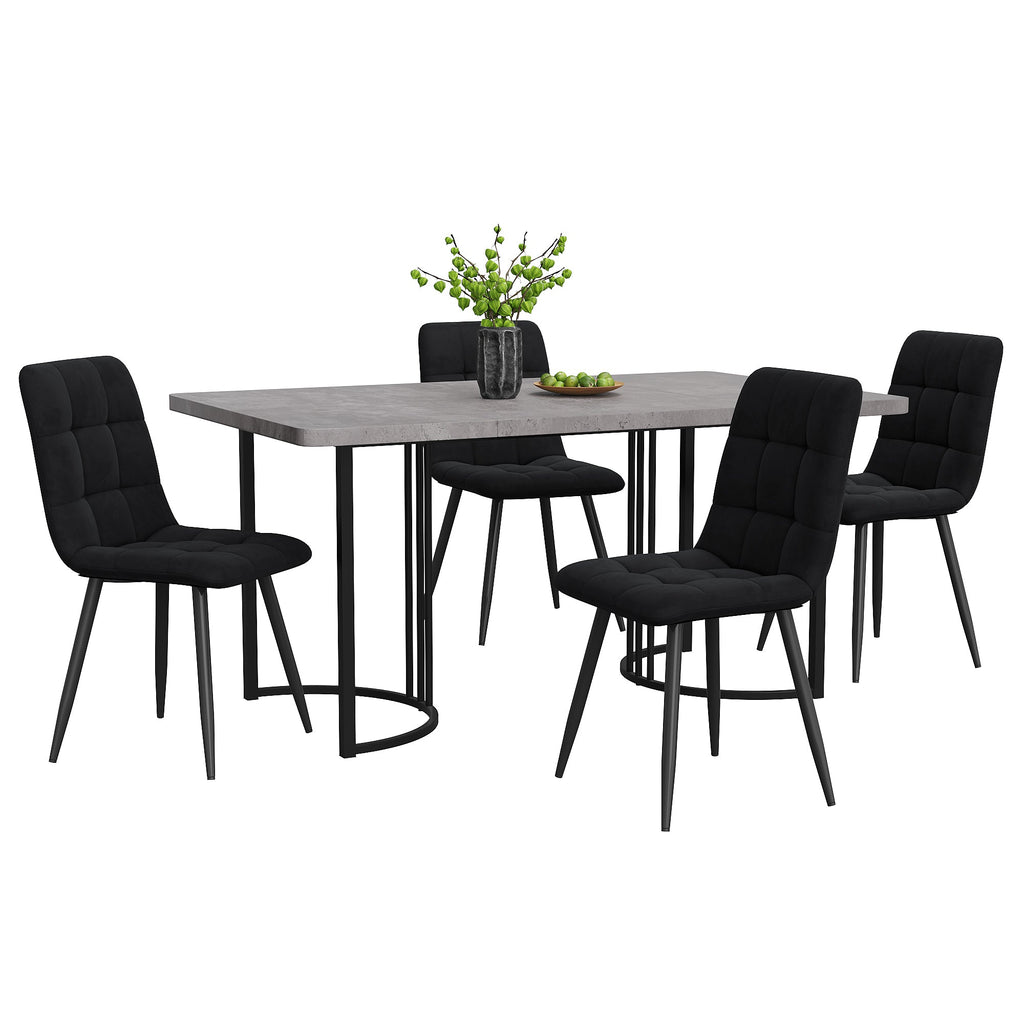 Dining Set, 5-Piece Modern Kitchen Table with 4 Chairs, 140x80cm, Grey MDF & Black Velvet