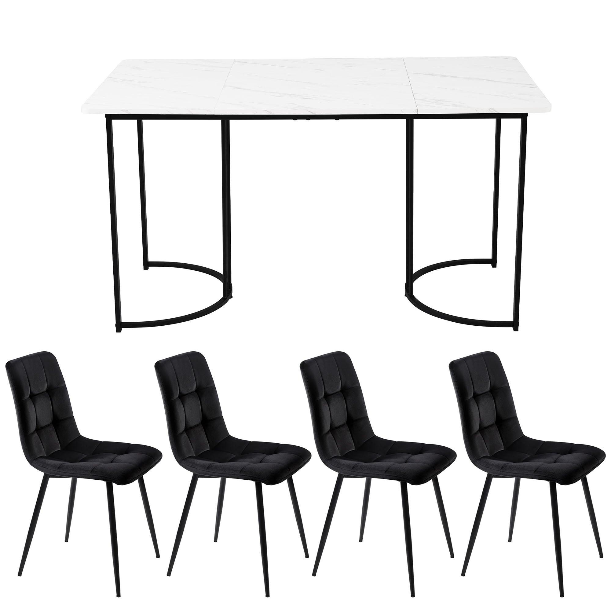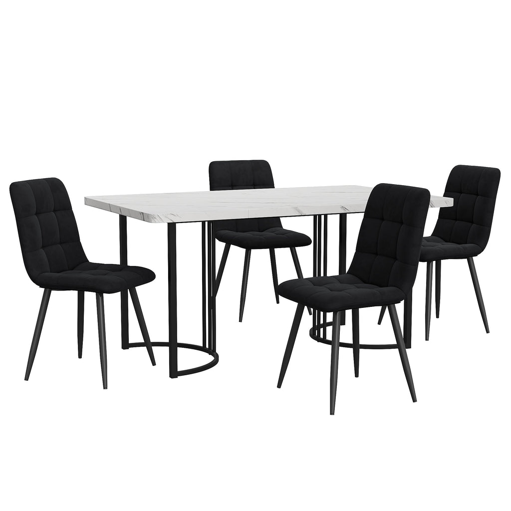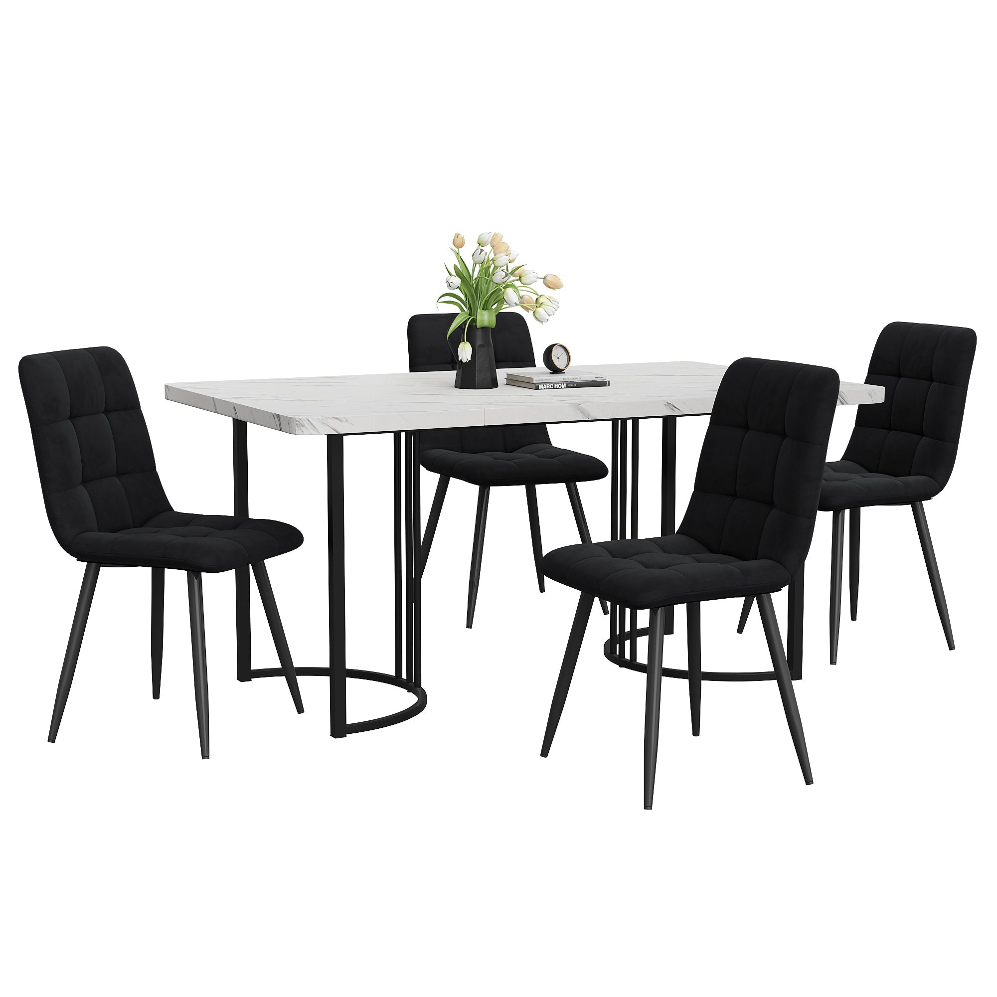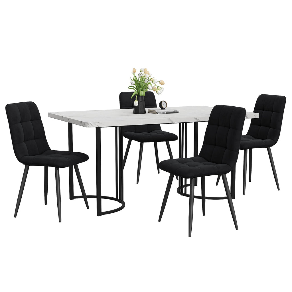 Dining Set, 5-Piece Modern Kitchen Table with 4 Chairs, White MDF & Black Velvet