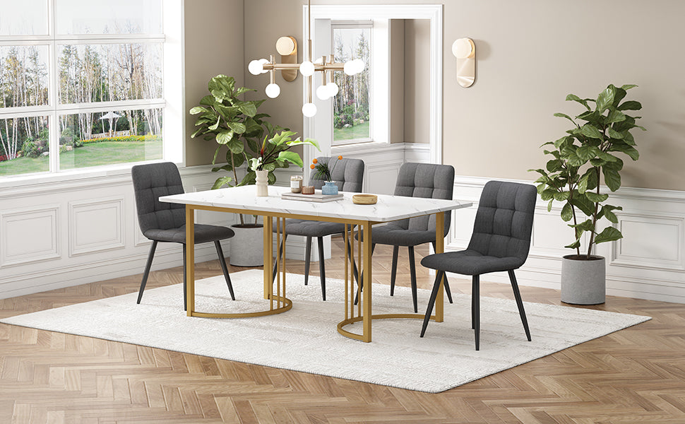 Dining Set, 5-Piece with 4 Chairs & 140x80cm Table, White MDF & Dark Gray Linen