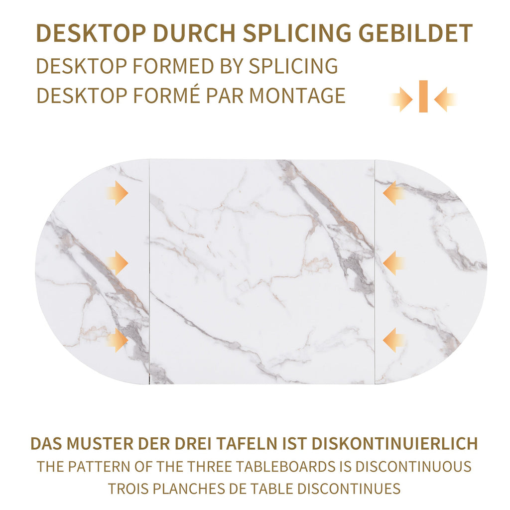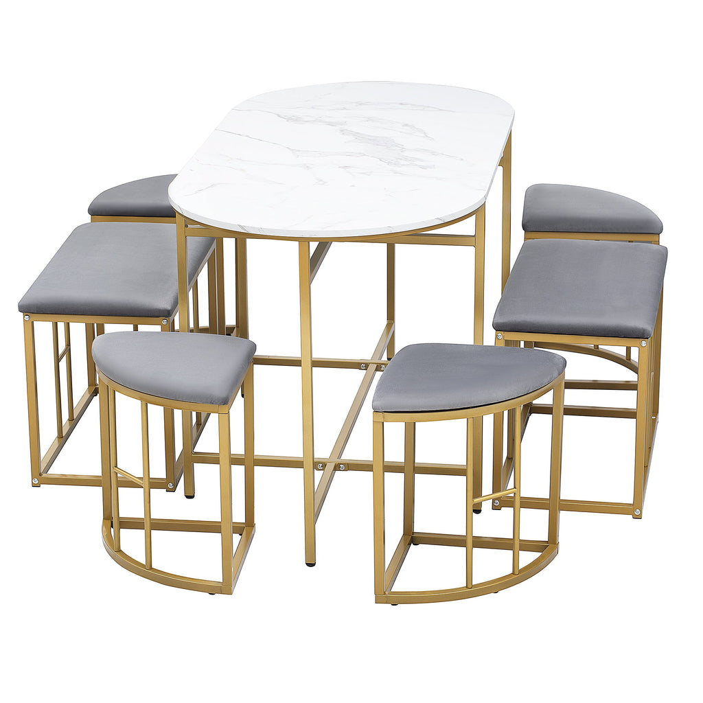Dining Set, 6-Piece with Steel Frame, White & Gold
