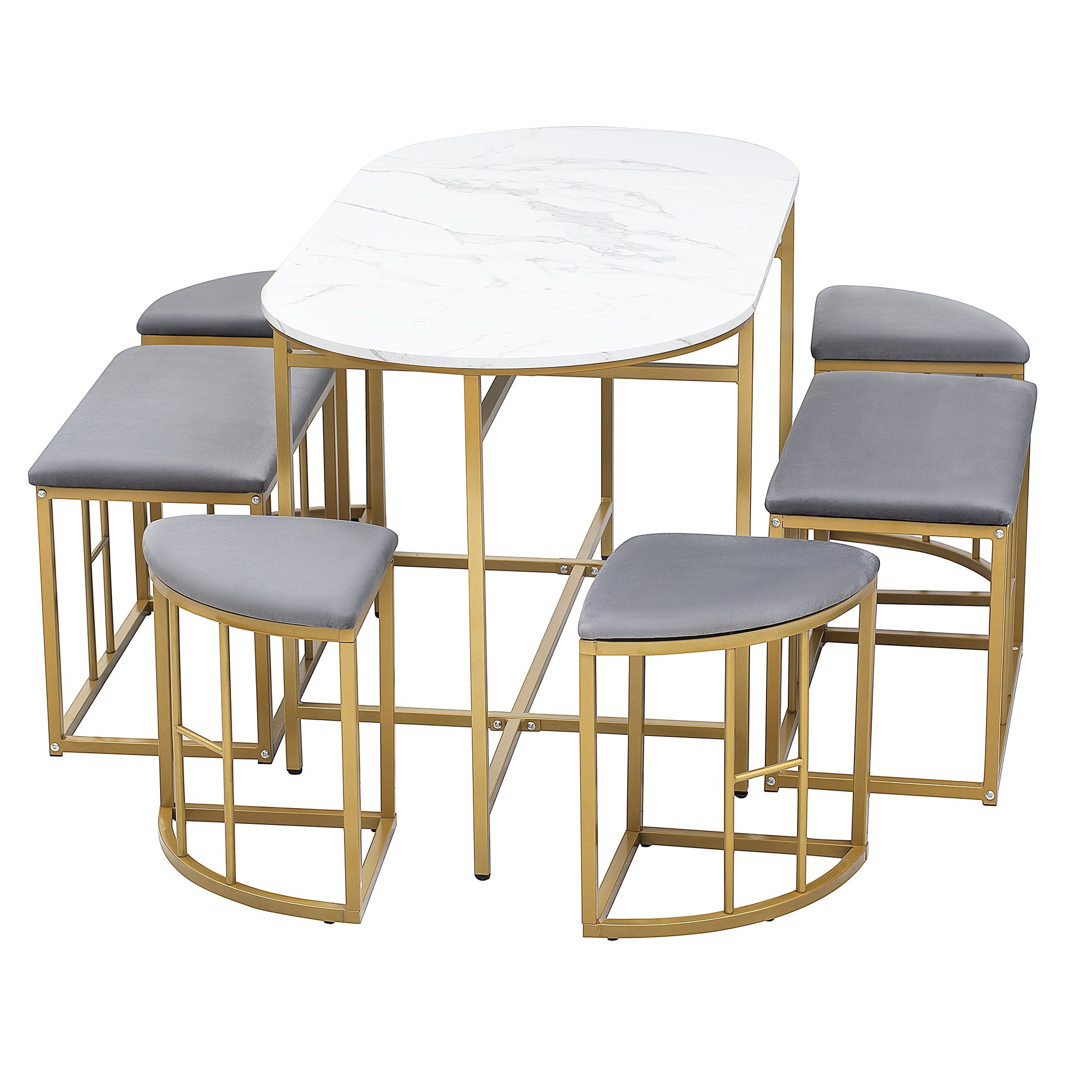 The 6 stools can be stored under the table when not in use. The compact design leaves more space in your home, making it suitable for kitchens, restaurants, bars, and parties, especially for small spaces.