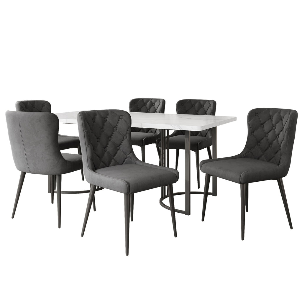 Dining Set, 7-Piece 140x80cm with 6 Chairs, Dark Gray