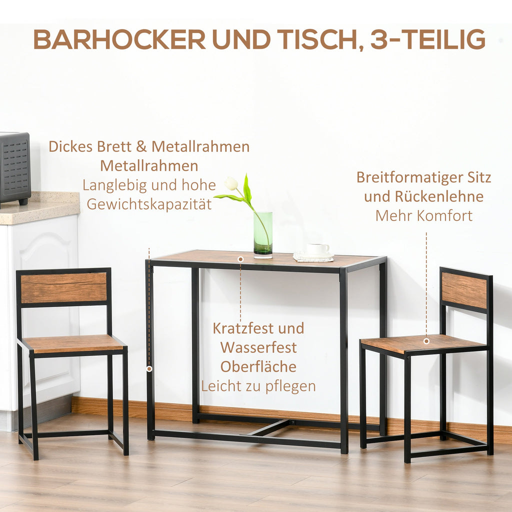 This elegant three-piece dining set features an industrial design, consisting of two chairs and a table. It's ideal for dining, drinking, and relaxing.
