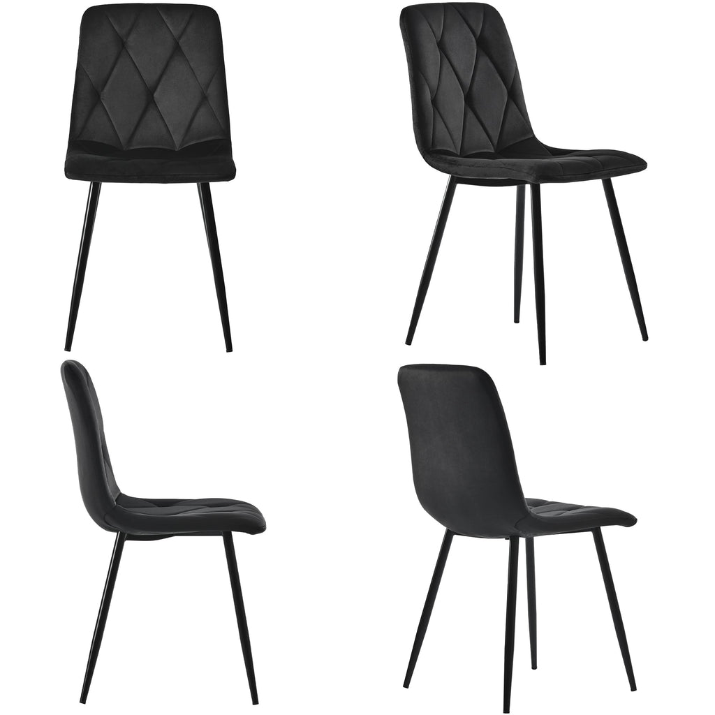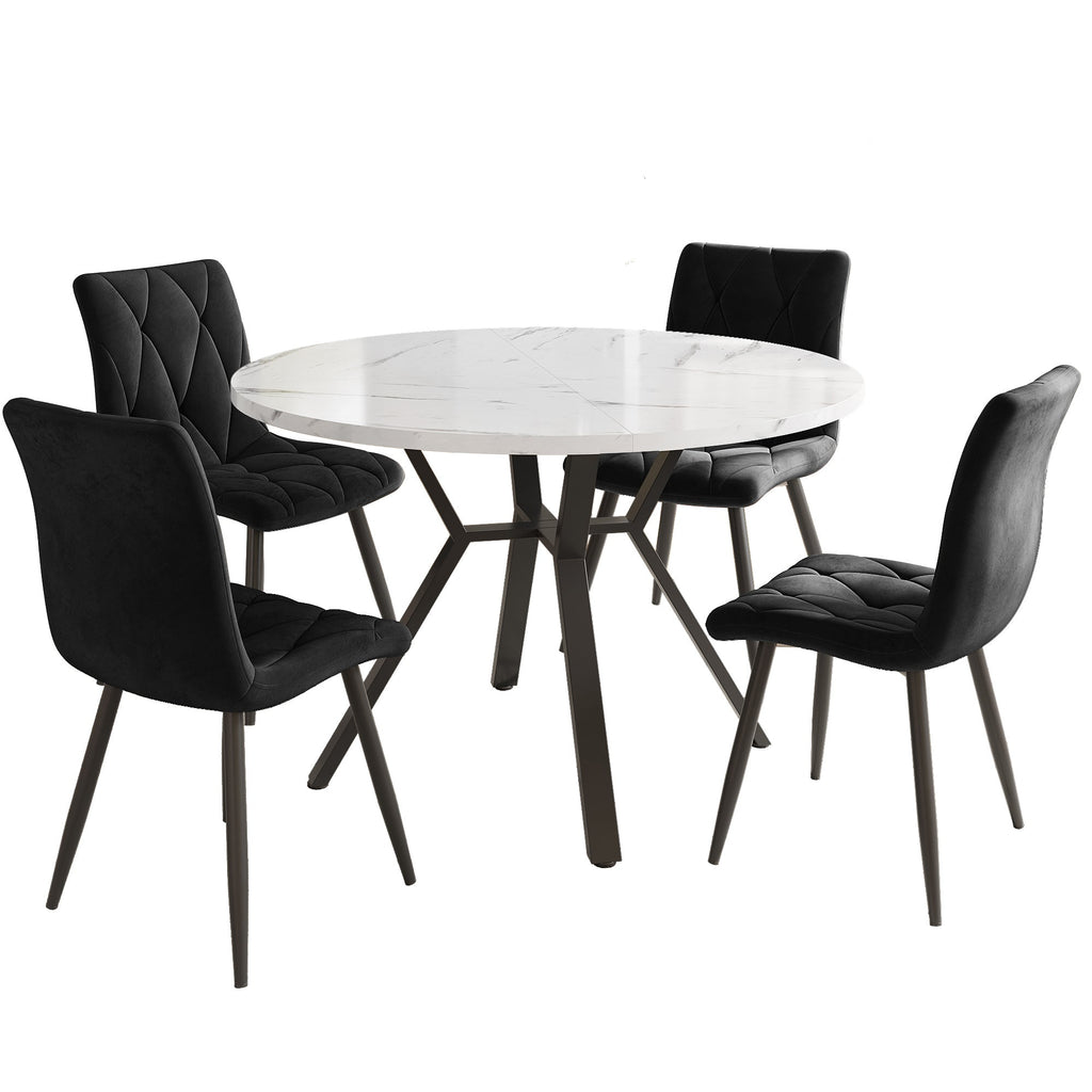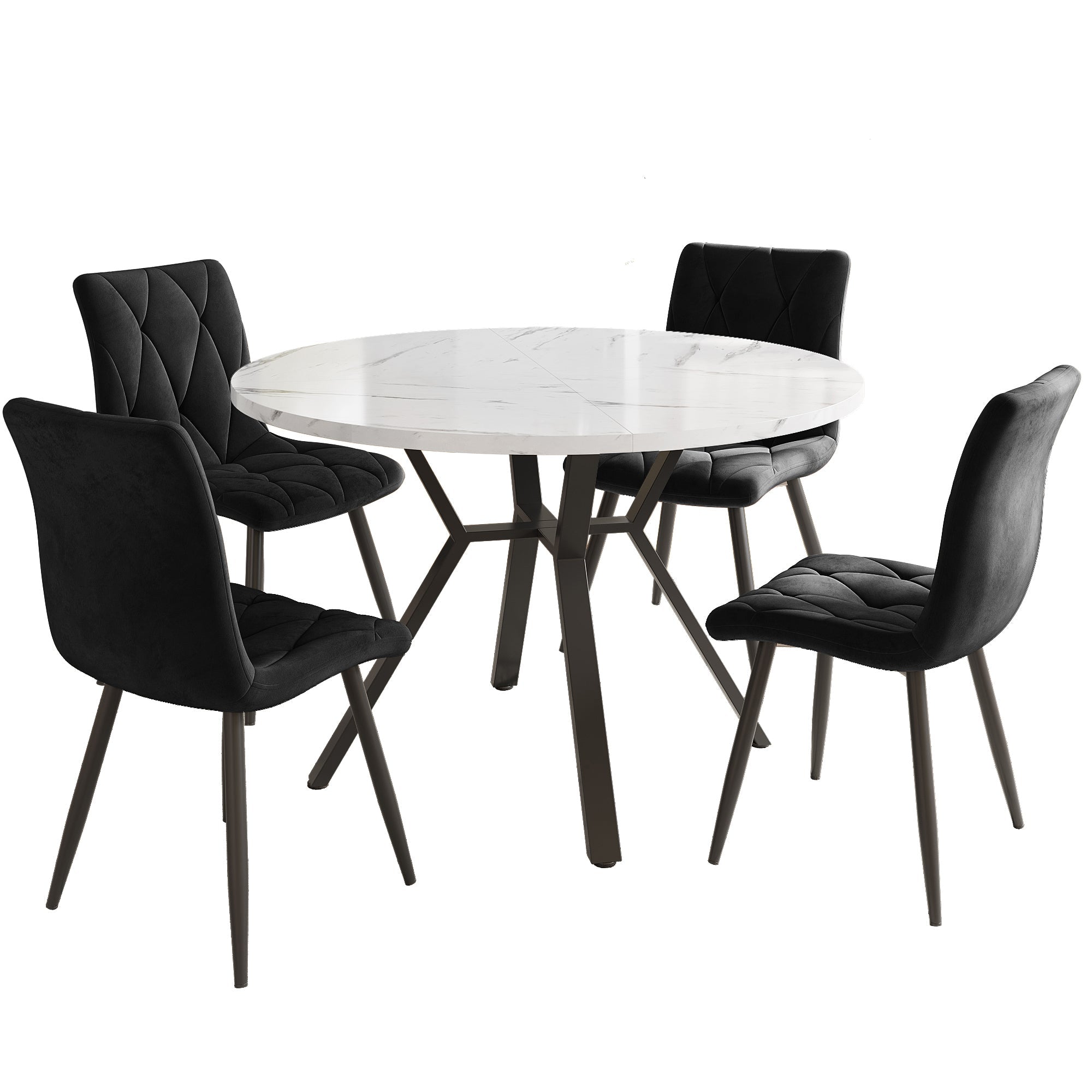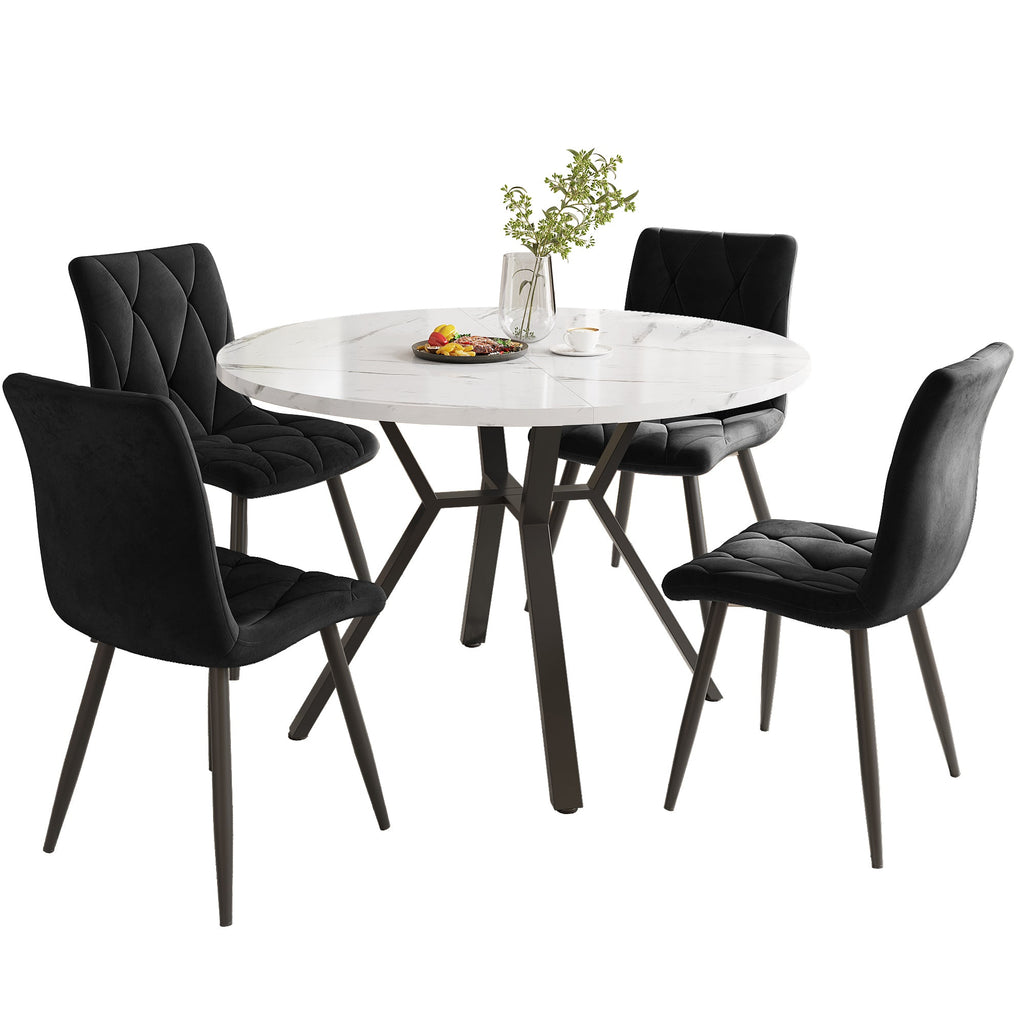 Dining Table and Chair Set, 5-Piece Modern Round Marble with Black Suede Chairs