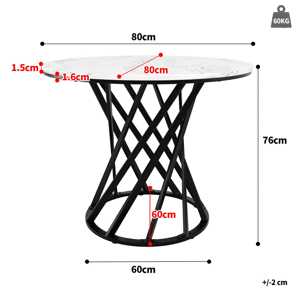 Product Size: One chair measures 44 x 41 x 86 cm, and the dining table has a diameter of 80 cm and a height of 76 cm.