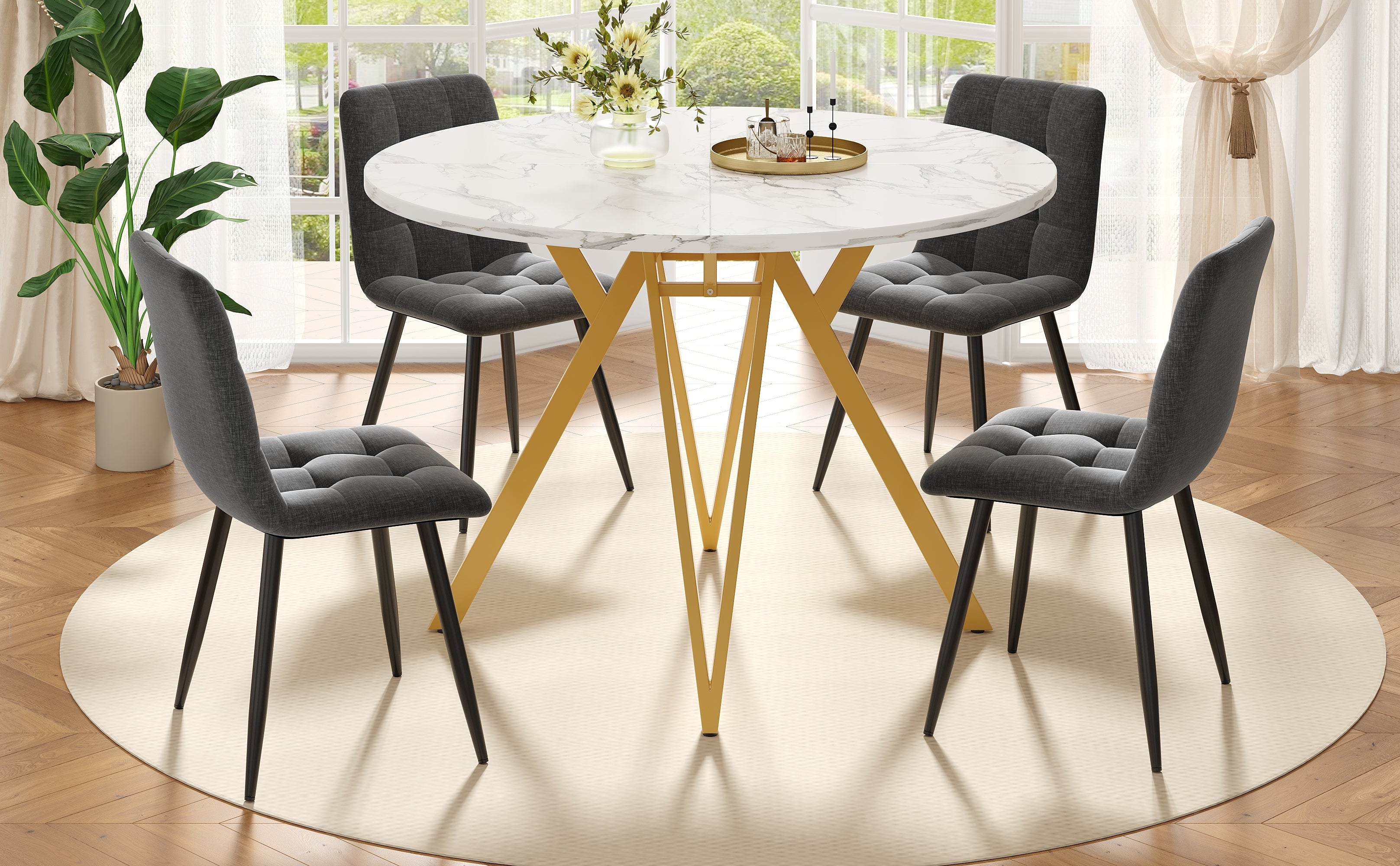 Dining Table Set, 5-Piece Round with Gold Metal Legs, Grey