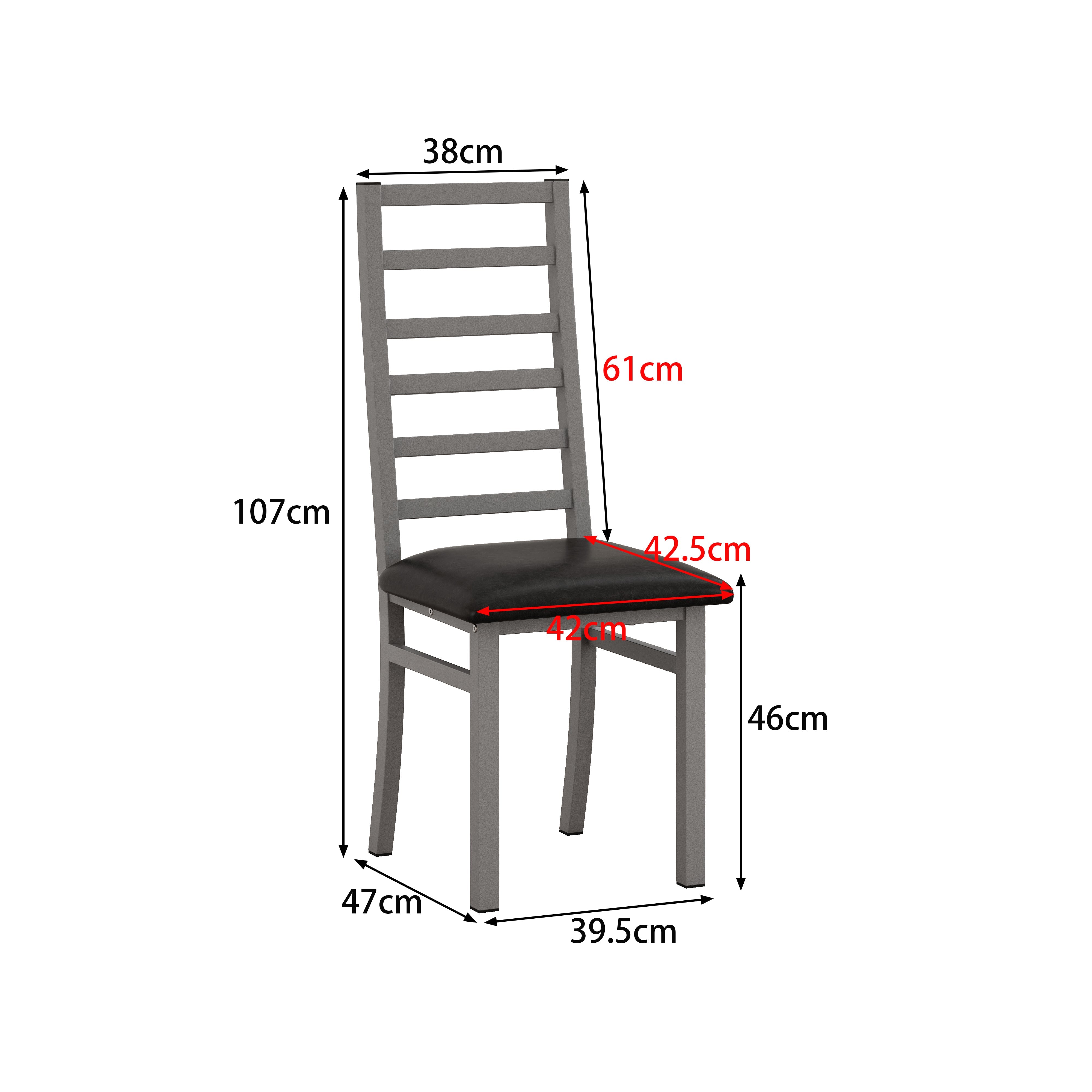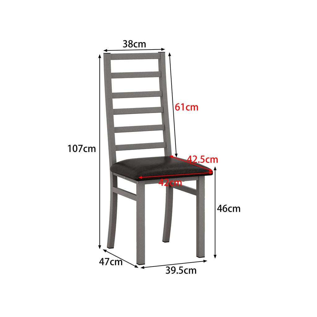 Material: The dining table is made of solid wood, MDF, and metal. The chairs are made of steel and PU leather.