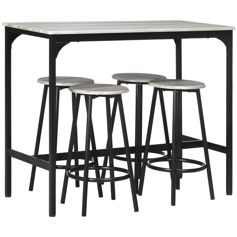 Five-Piece Bar Table Set Industrial-Style Dining Grey/Black