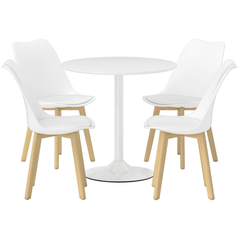 Five-piece dining set: A round table with four matching dining chairs, providing room for you and your family to gather round, from breakfast through to dinner.