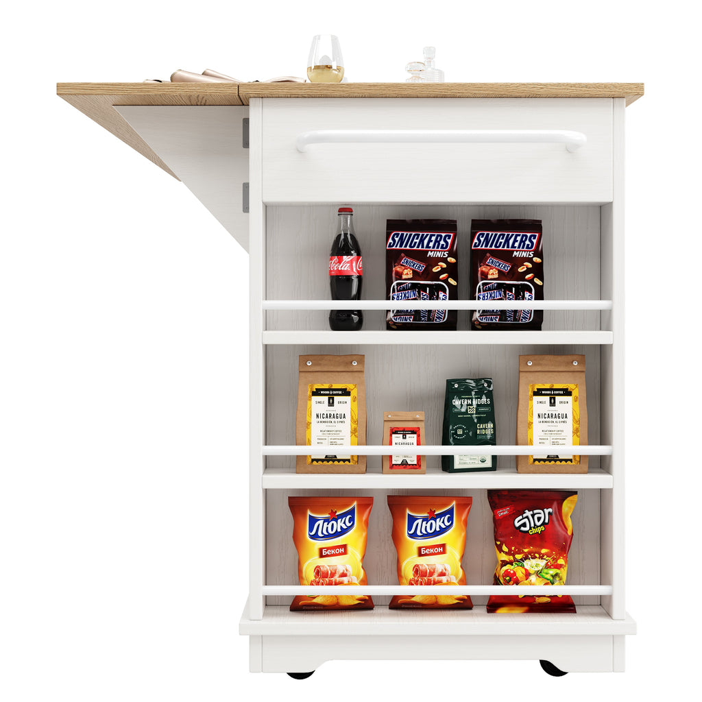 Practical Multi-layered Side Shelves: The multi-layered design of the side shelves further expands storage space and provides room for frequently used items such as cling film, kitchen towels, and spice bottles, which can be conveniently accessed at any time. The position of the side shelves is sensibly designed so that they do not detract from the overall appearance of the island, yet make optimal use of space and make storage more convenient. The drawer features a dust-proof function, effectively preventing dust from entering and keeping items in the drawer clean and hygienic. This is especially important for storing dishes and other items that need to be kept clean. It reduces the frequency of cleaning and makes life in the kitchen easier and more convenient.
