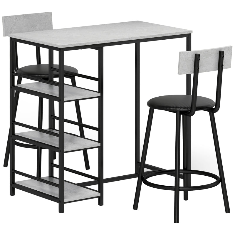 Three-piece dining set: Comes with a bar table and two PU leather chairs, allowing you to sit and dine with company, day and night. The chairs tuck neatly under the table, saving space when not in use.