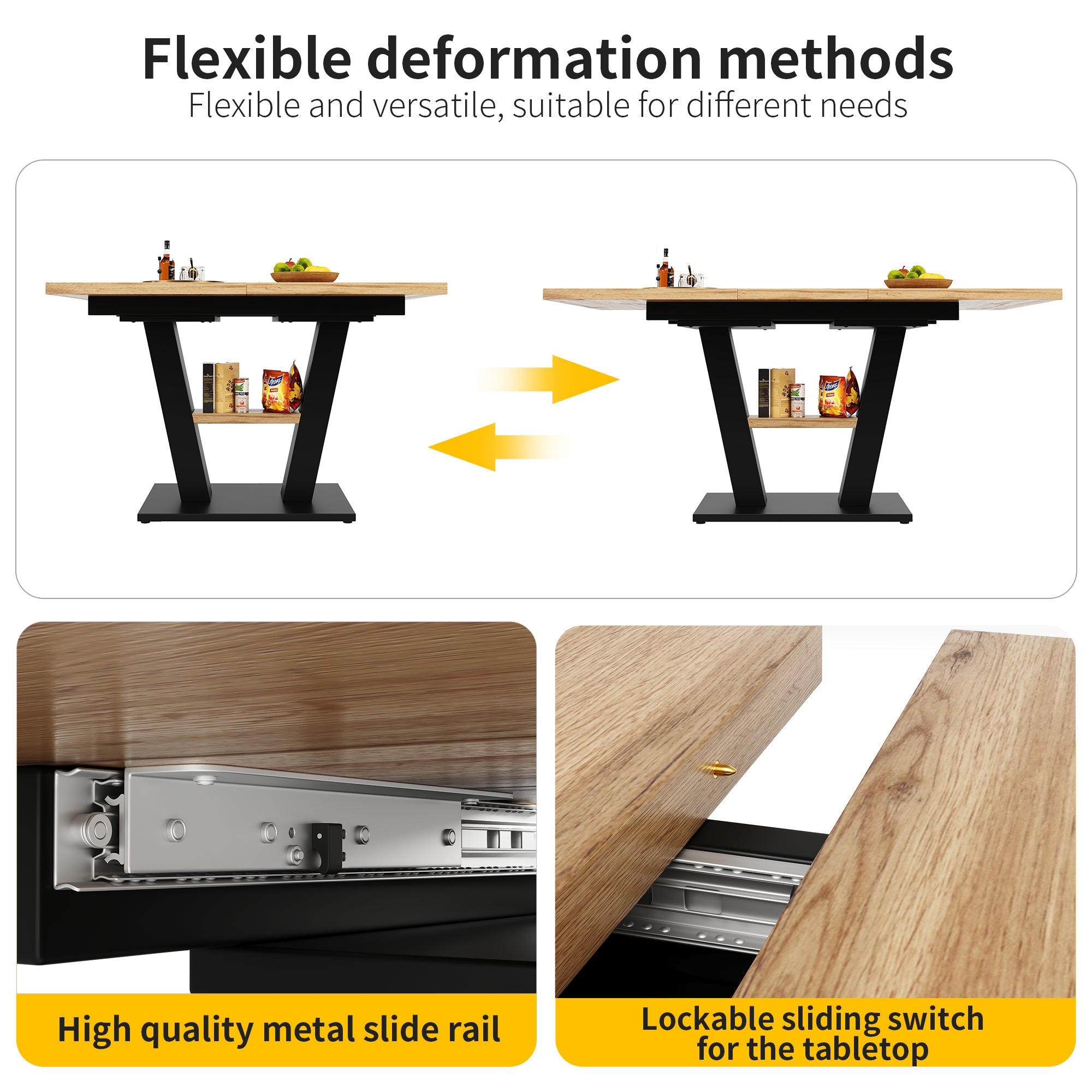 This dining table combines elegance and practicality. The marbled MDF tabletop (with discontinuous marbling) is not only beautiful but also durable, and the unique design of the V-shaped legs ensures modernity and stability. The tabletop is extendable and can be extended from 118 cm to 157 cm as needed, making it easy to adapt to different space requirements and party sizes. Whether for everyday family meals or entertaining friends, this table brings comfort and style to your home.