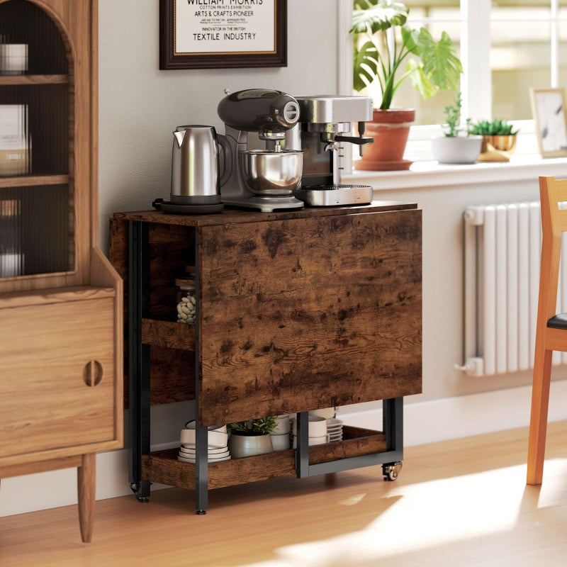 Folding Dining/Kitchen Table for 2-4 People, 2 Open Shelves, Portable, Rustic Brown