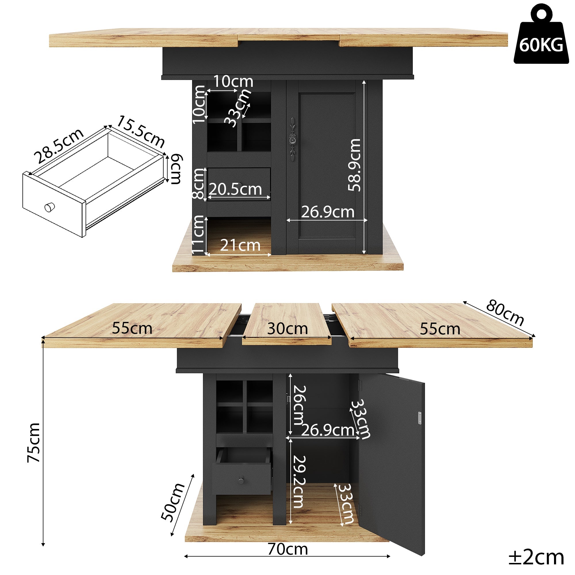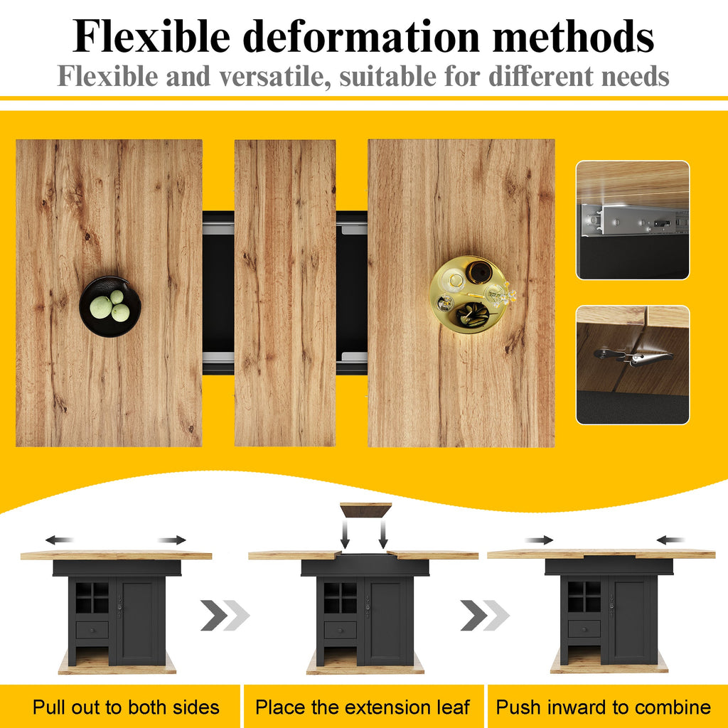 Telescopic Dining Table, Extendable 4-6 Person Space-Saving with Wine Rack, MDF/Metal