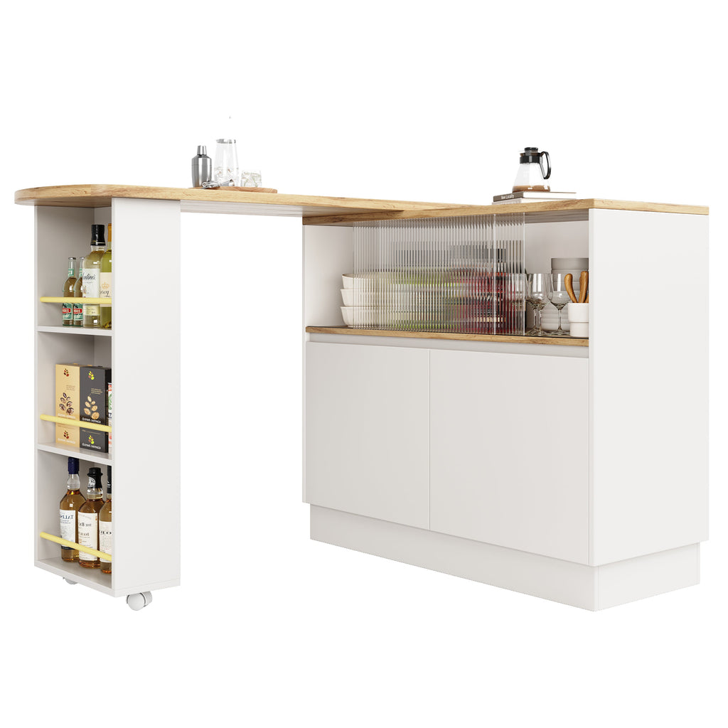 With a unique 360-degree rotation function, this dining and bar cabinet can be freely rotated and adapted to various home scenarios. It can be easily transformed into a kitchen island, a restaurant bar cabinet, a living room shelf, and other functional areas. When placed in the kitchen, it is an ideal helper for your meal preparation, allowing you to conveniently store and access various ingredients and cooking utensils. When placed in a restaurant, it becomes an elegant display cabinet for storing wine sets and tableware, easily creating a warm atmosphere for gatherings. It can also be used in the living room as a bar counter or display cabinet for storing your favorite decorations and books. This multifunctional piece of furniture breaks traditional boundaries and adapts to your changing living needs, improving the use of space while adding style to your home.