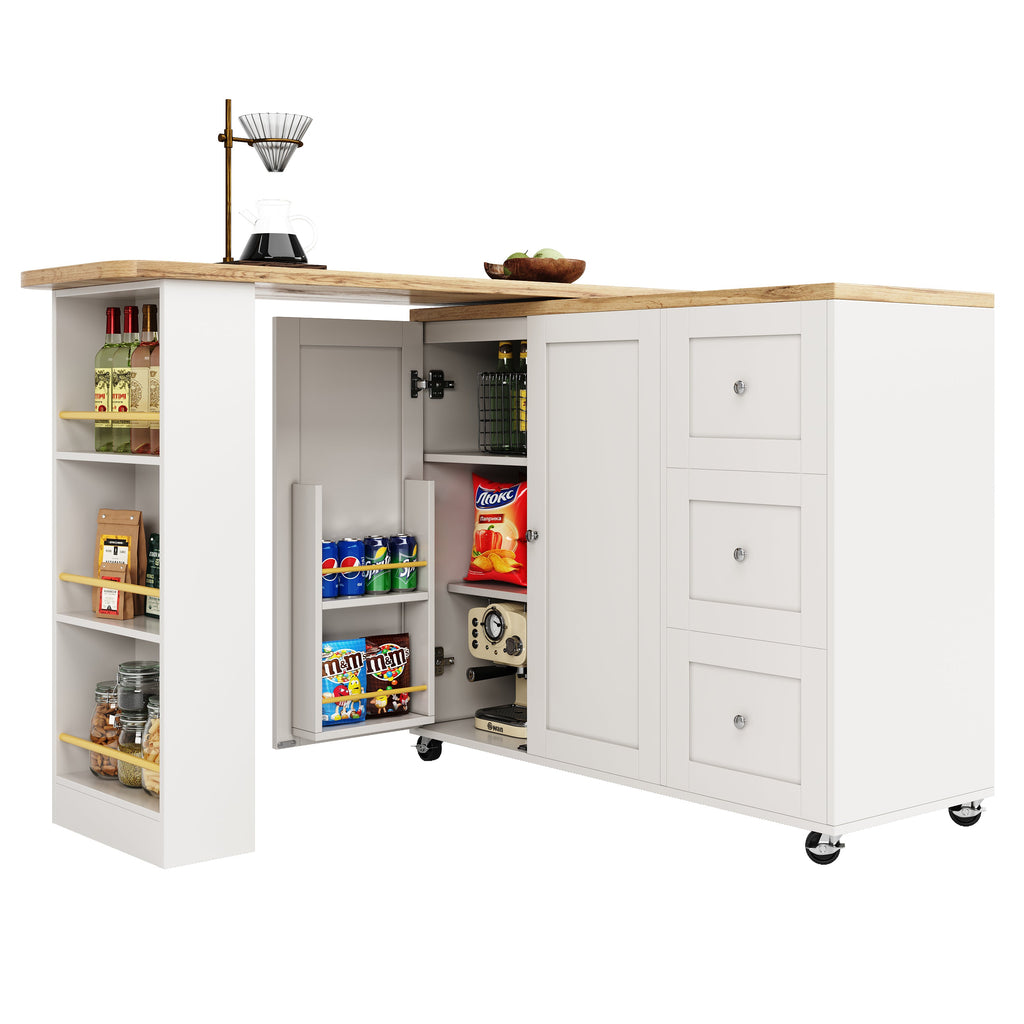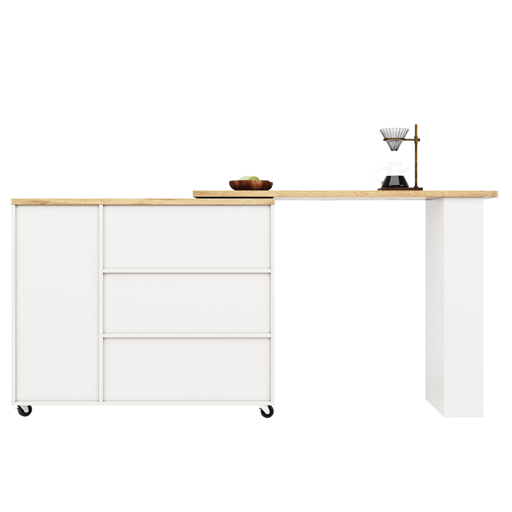 The selection of high-quality panels ensures the product's durability and structural stability, allowing you to use it for a long time without worry. The unique, functional 360° rotatable design allows you to freely change the layout of the center connecting panel depending on the room size or scene requirements. It can be arranged in an L-shaped structure to add functionality to corner spaces, or it can be easily aligned and placed on a bar counter. The side cabinet is equipped with spacious storage space, and the practical partition design helps you store items efficiently and enhances the user experience.