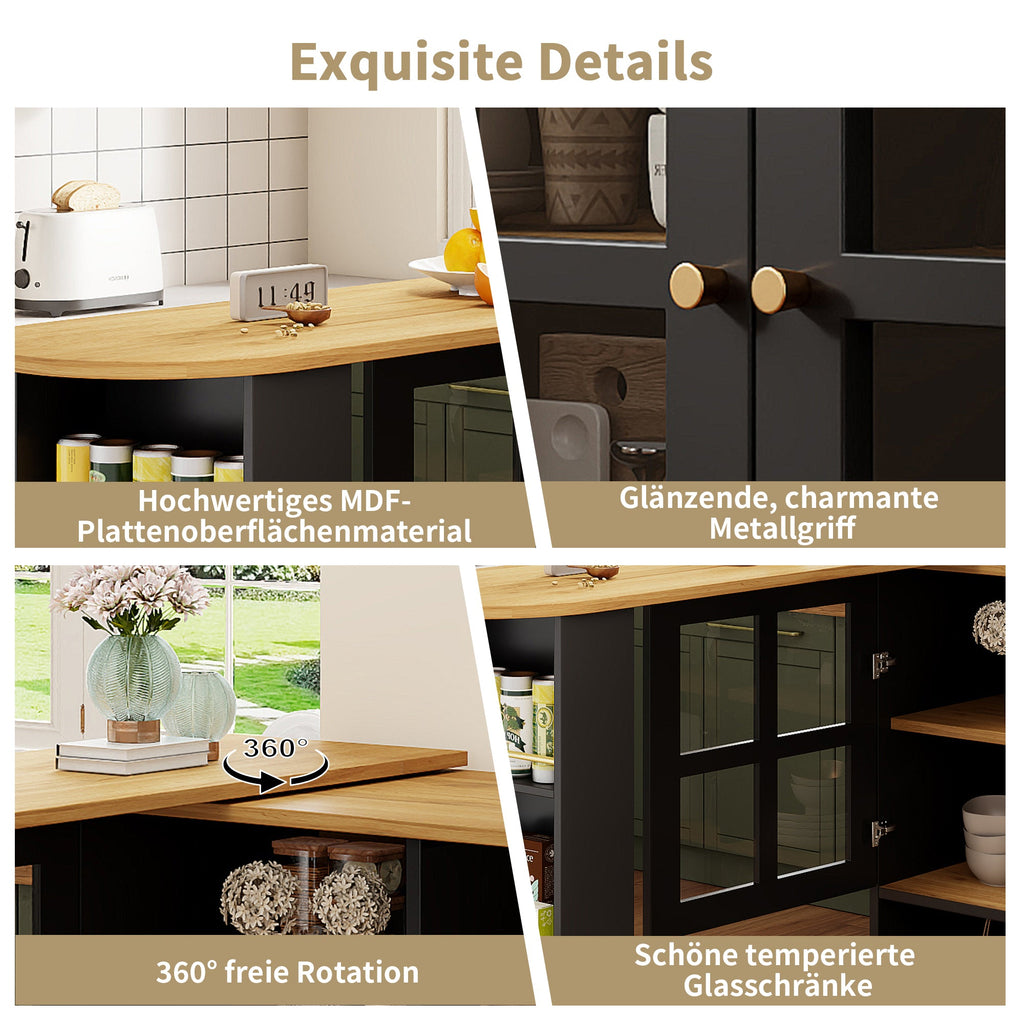 Dining Bar, 360° Rotating Multifunctional with 5 Shelves, Black