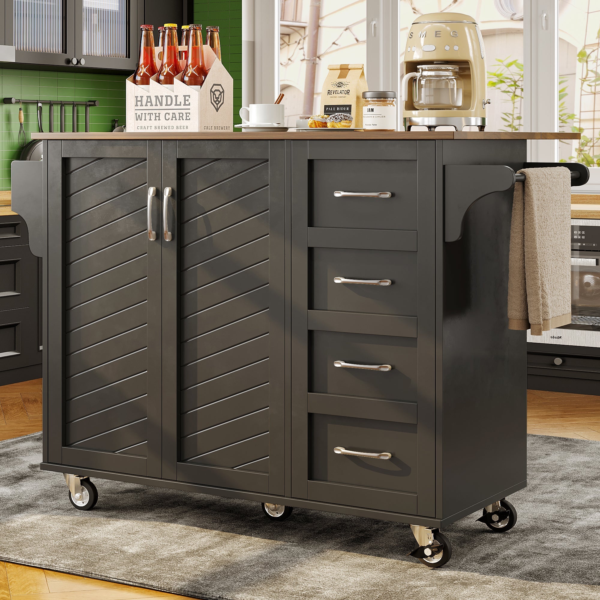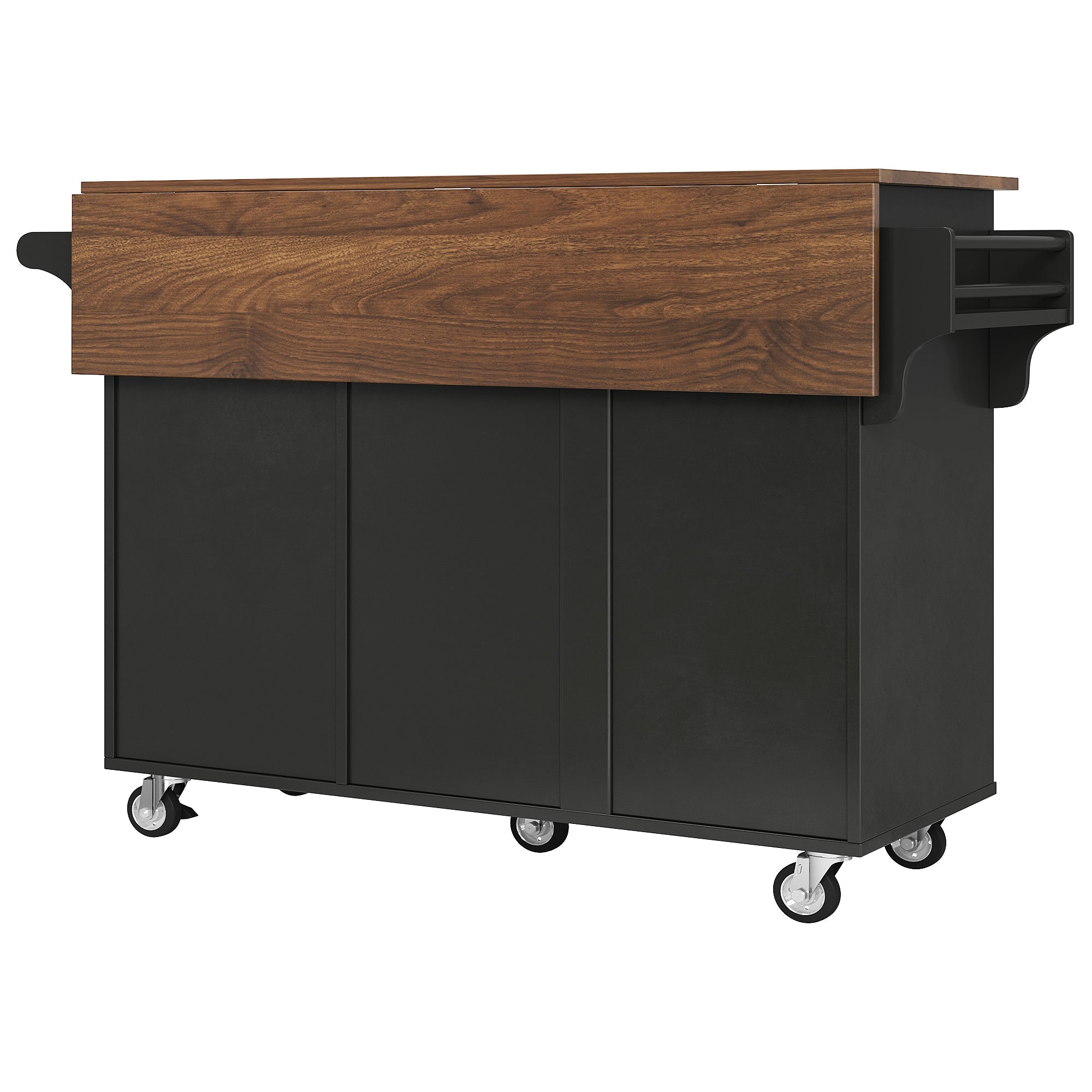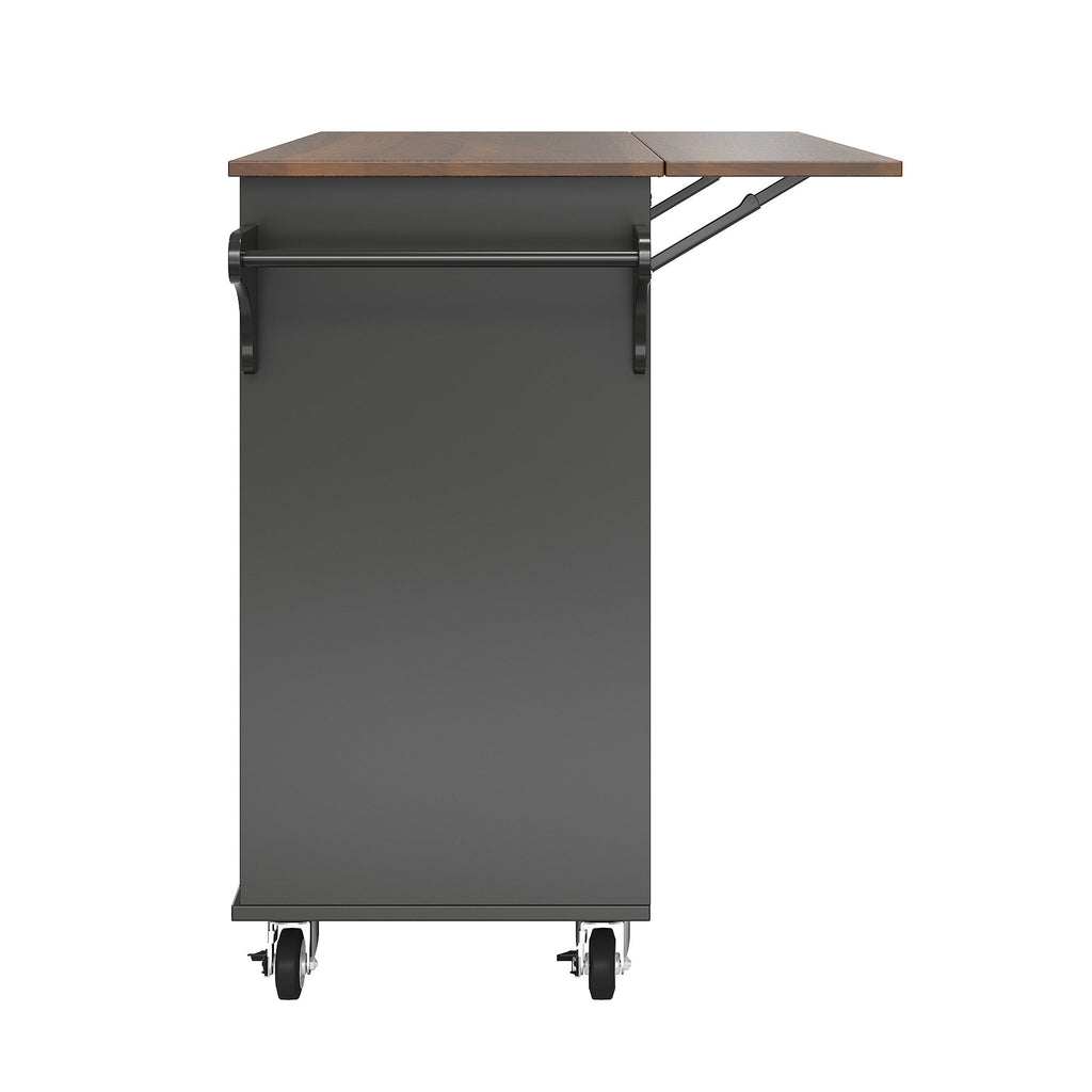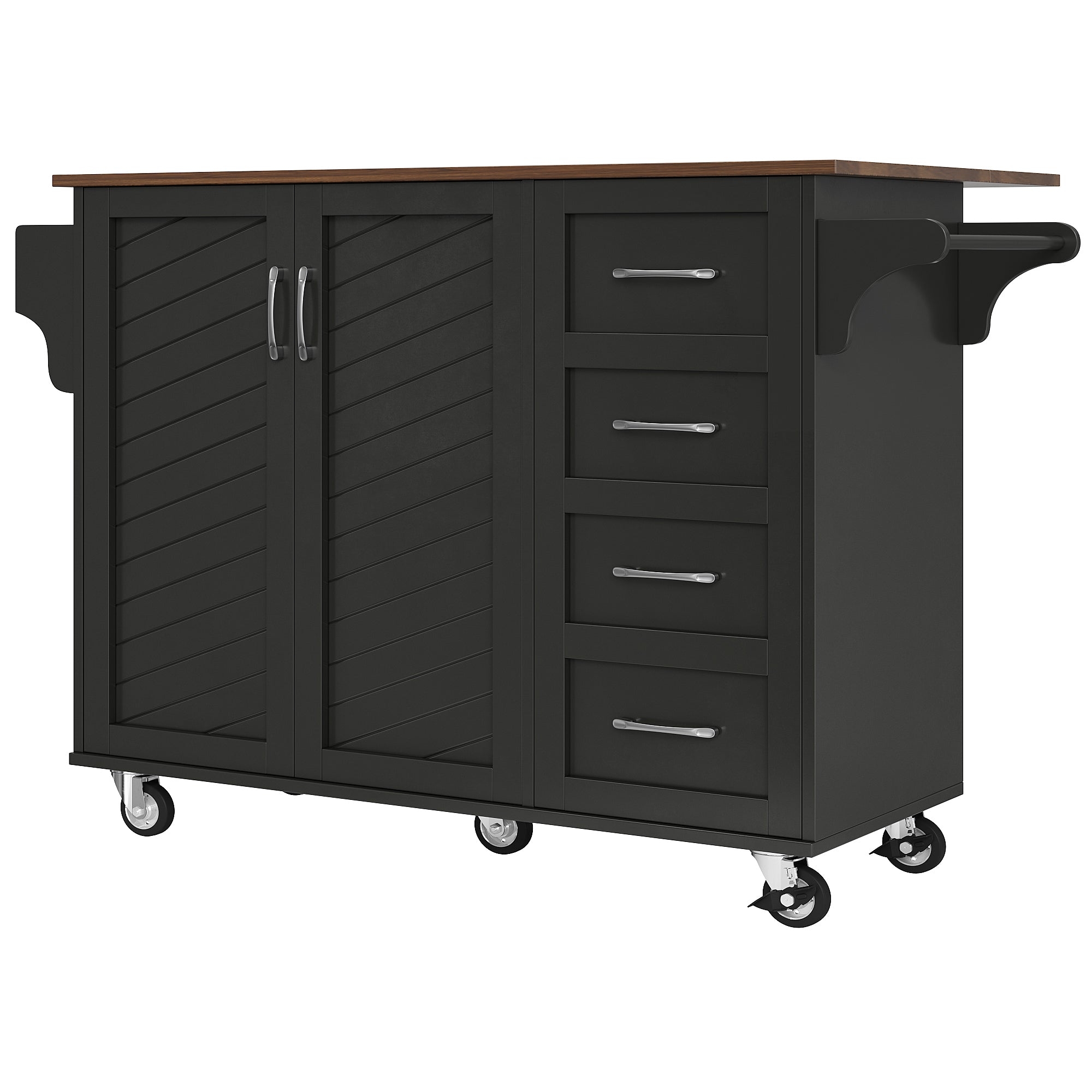 Kitchen Cart with Diagonally Striped Cabinet Doors, Removable, Black Wood Grain