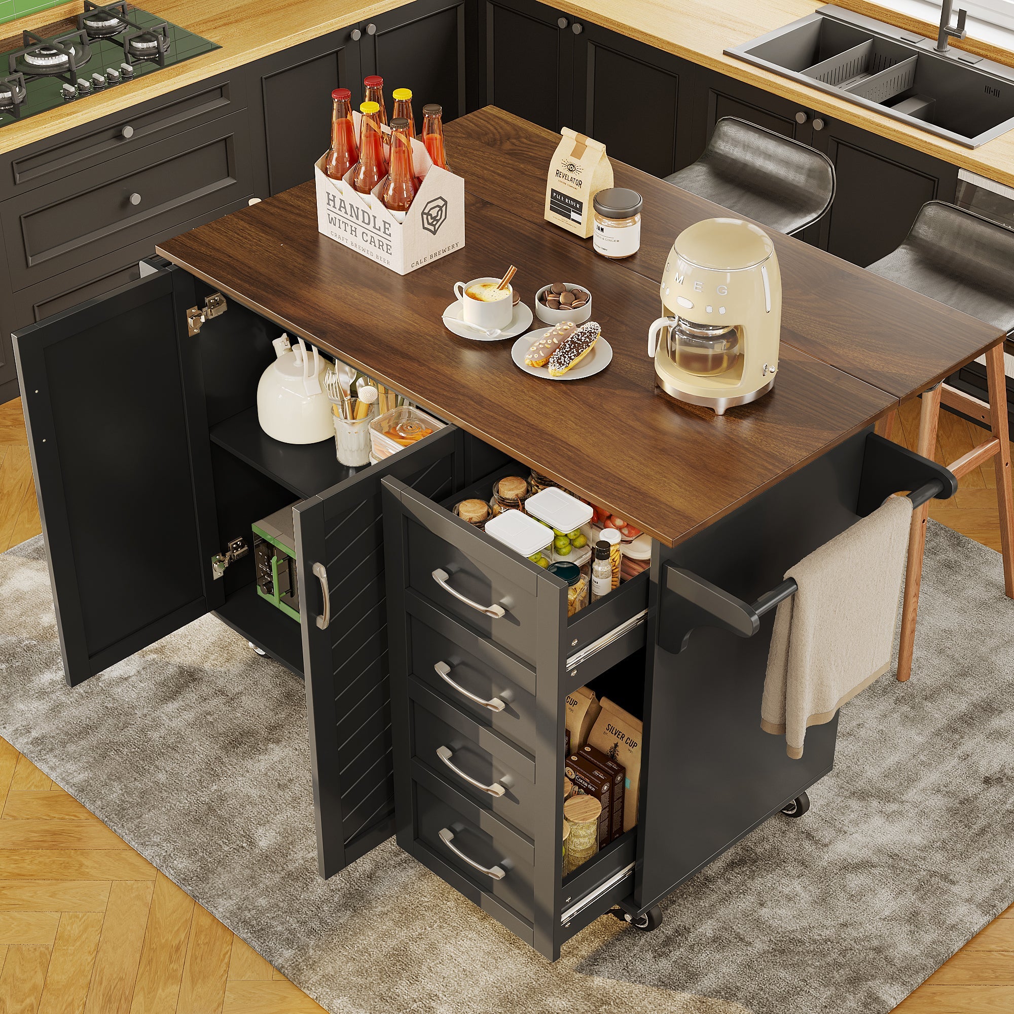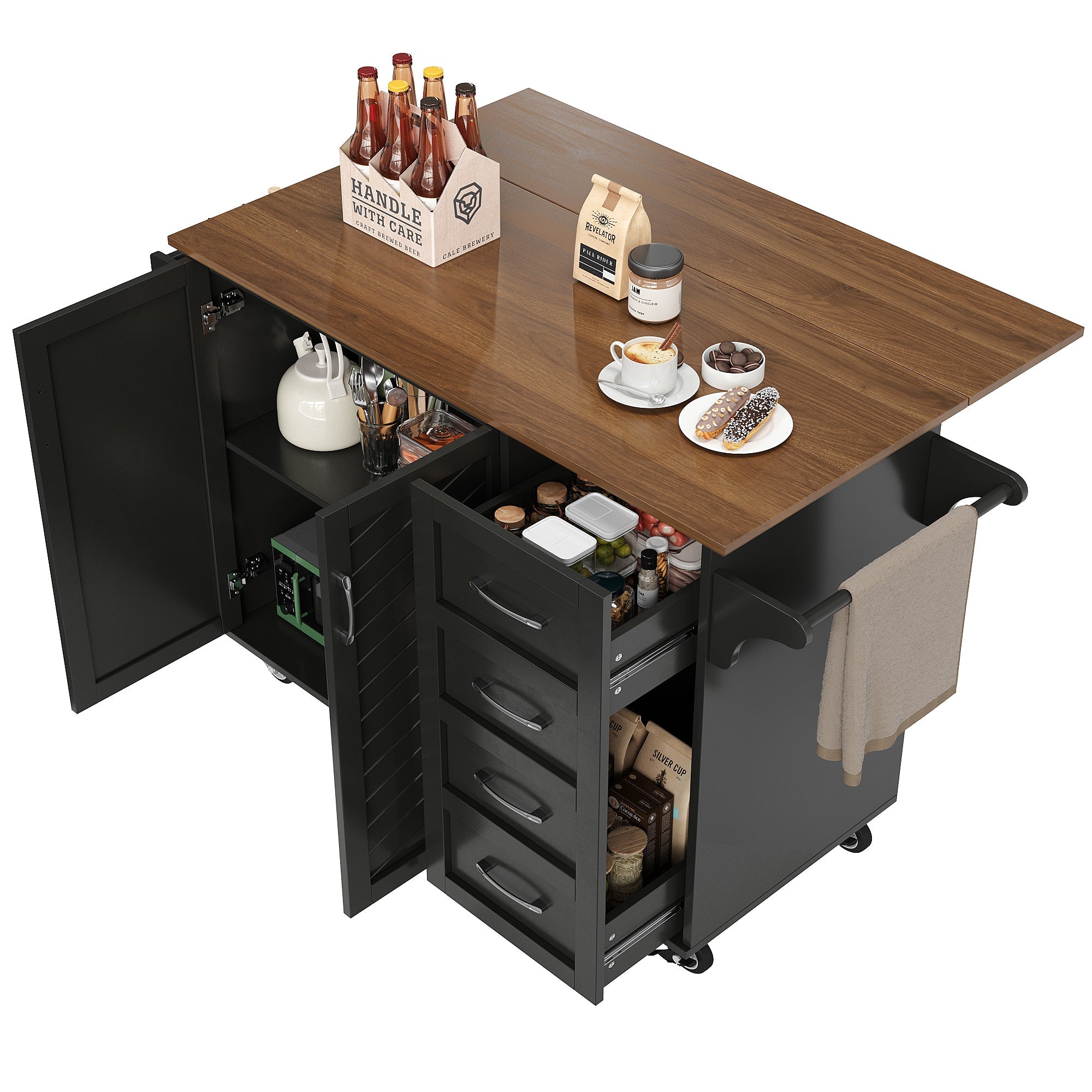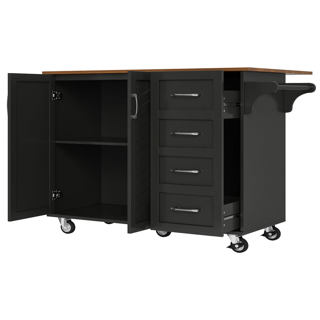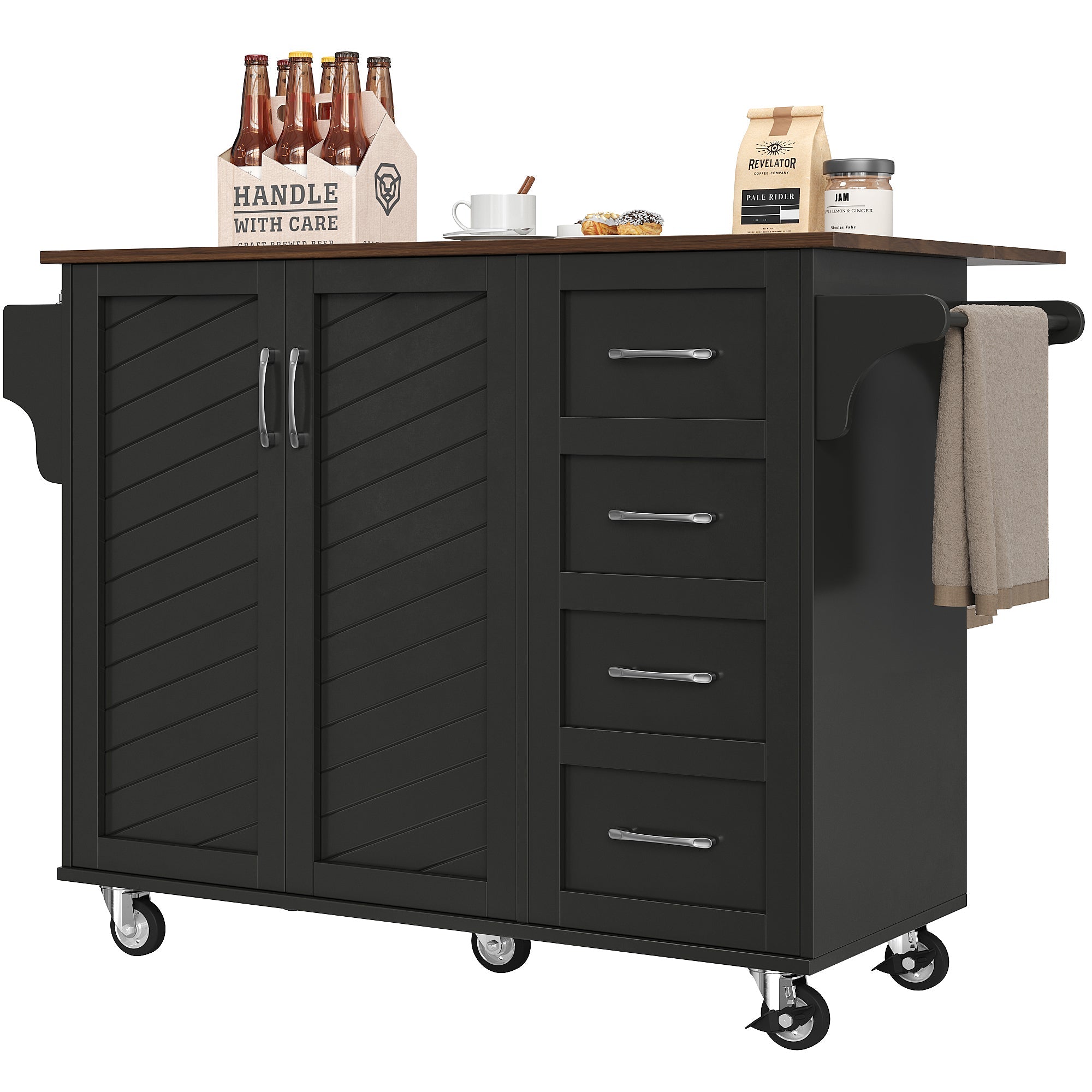 Kitchen Cart with Diagonally Striped Cabinet Doors, Removable, Black Wood Grain