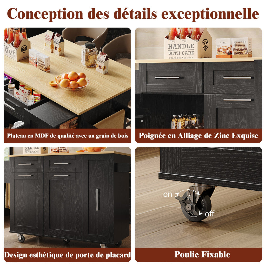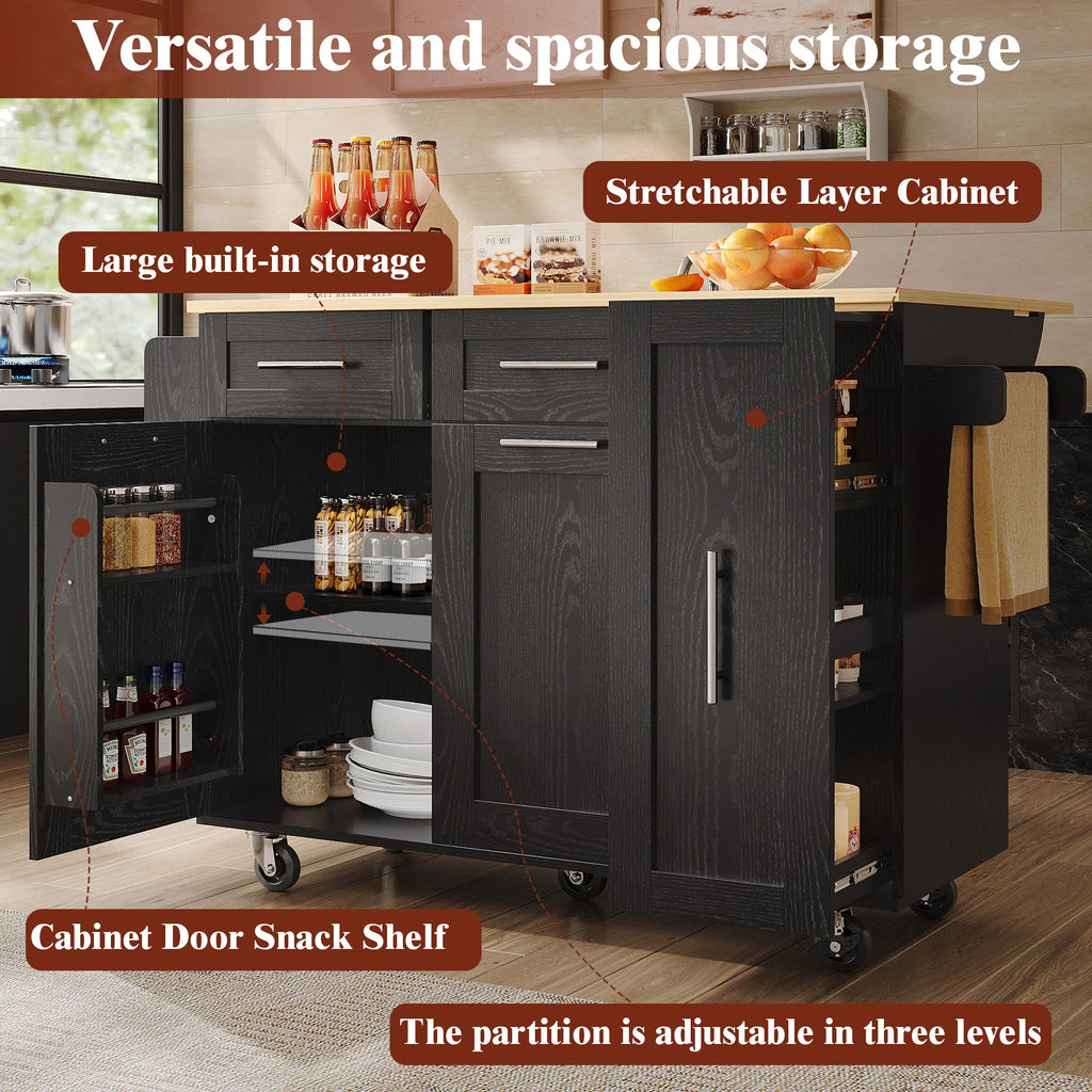 Kitchen Island, Buffet Cabinet Dining Cart with Storage, Black