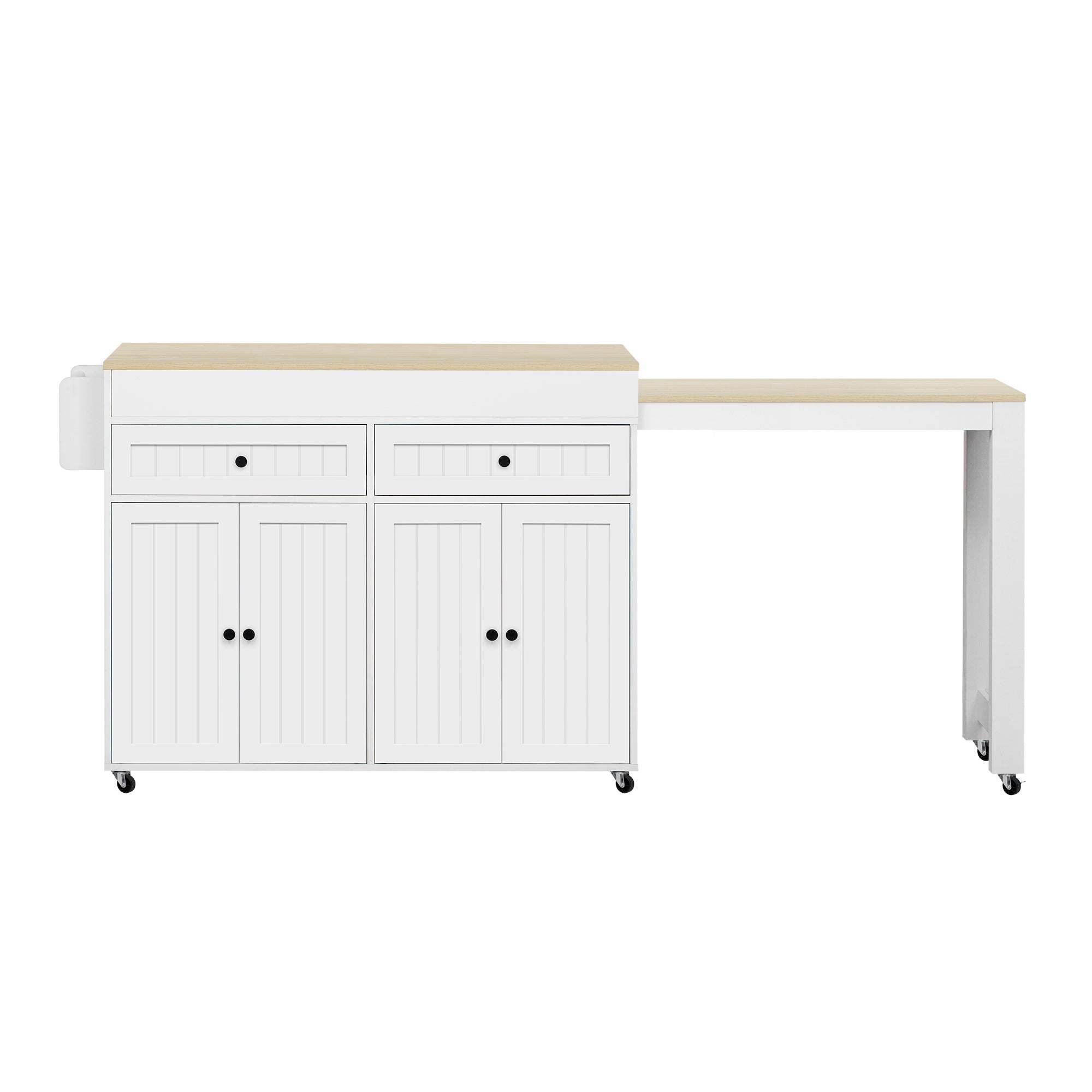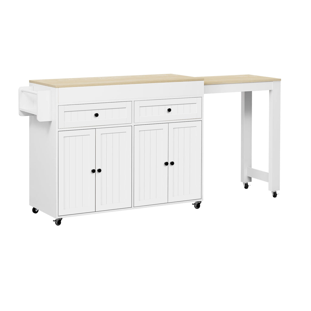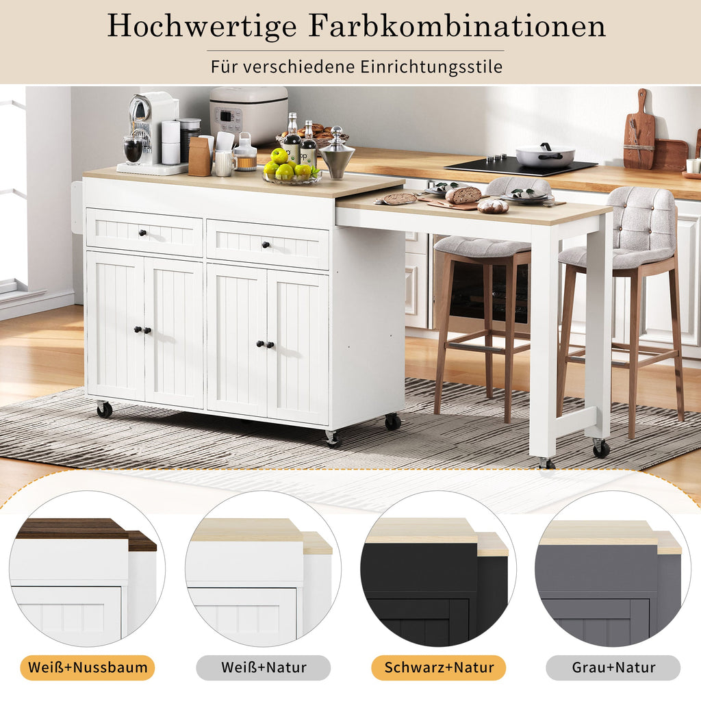 Kitchen Island, Extendable with Worktop & Drawers, Mobile, White+Natural