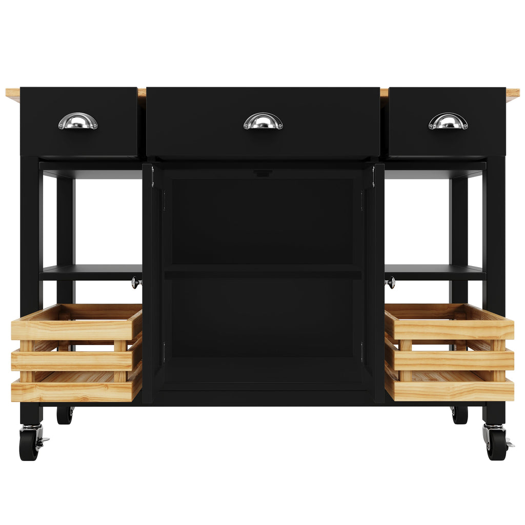 Kitchen Island, Multifunctional with Pine Basket, Black