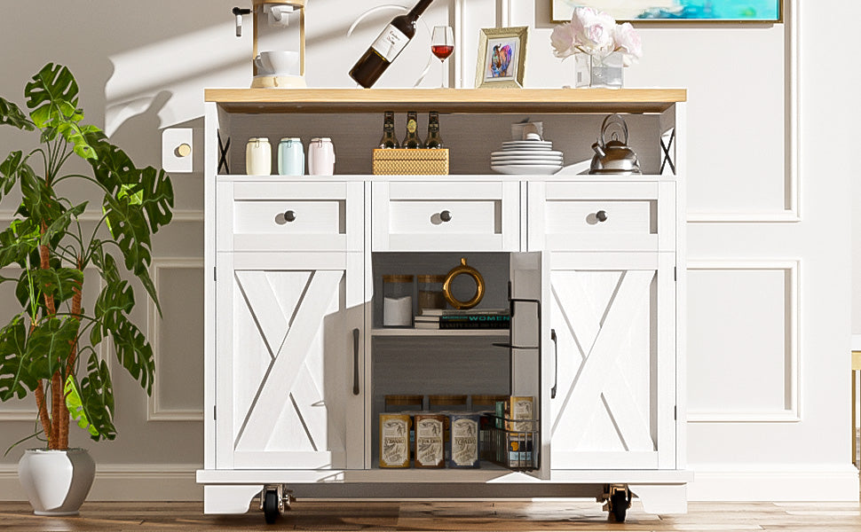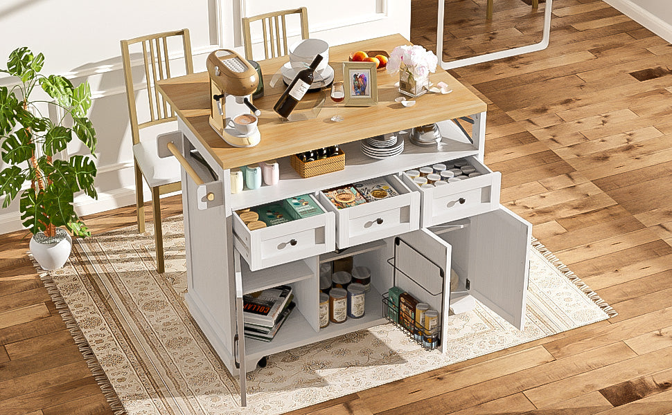 Kitchen Island, Multifunctional with Removable Dividers & Towel Rail, White