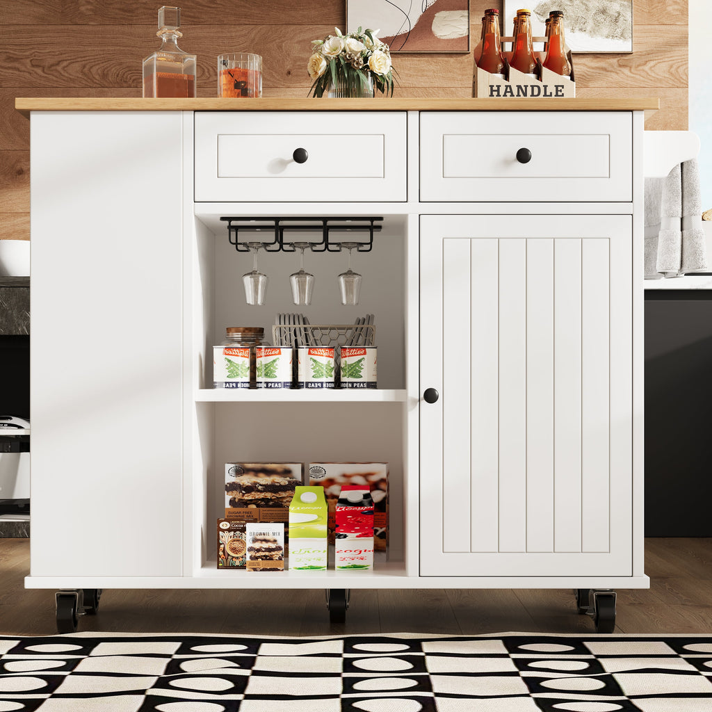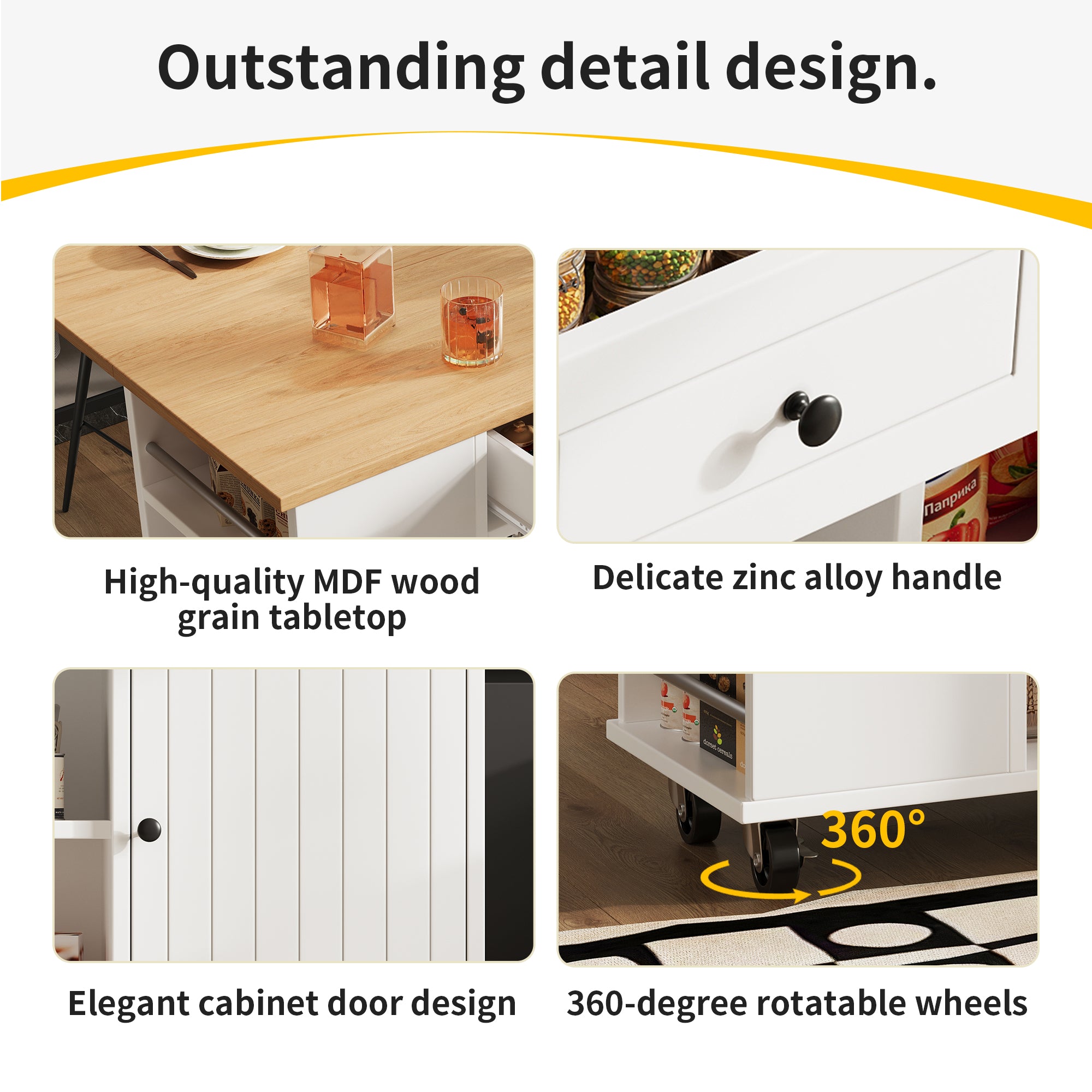 Kitchen Island, Removable Dividers, Dining Cart, White Wood Grain