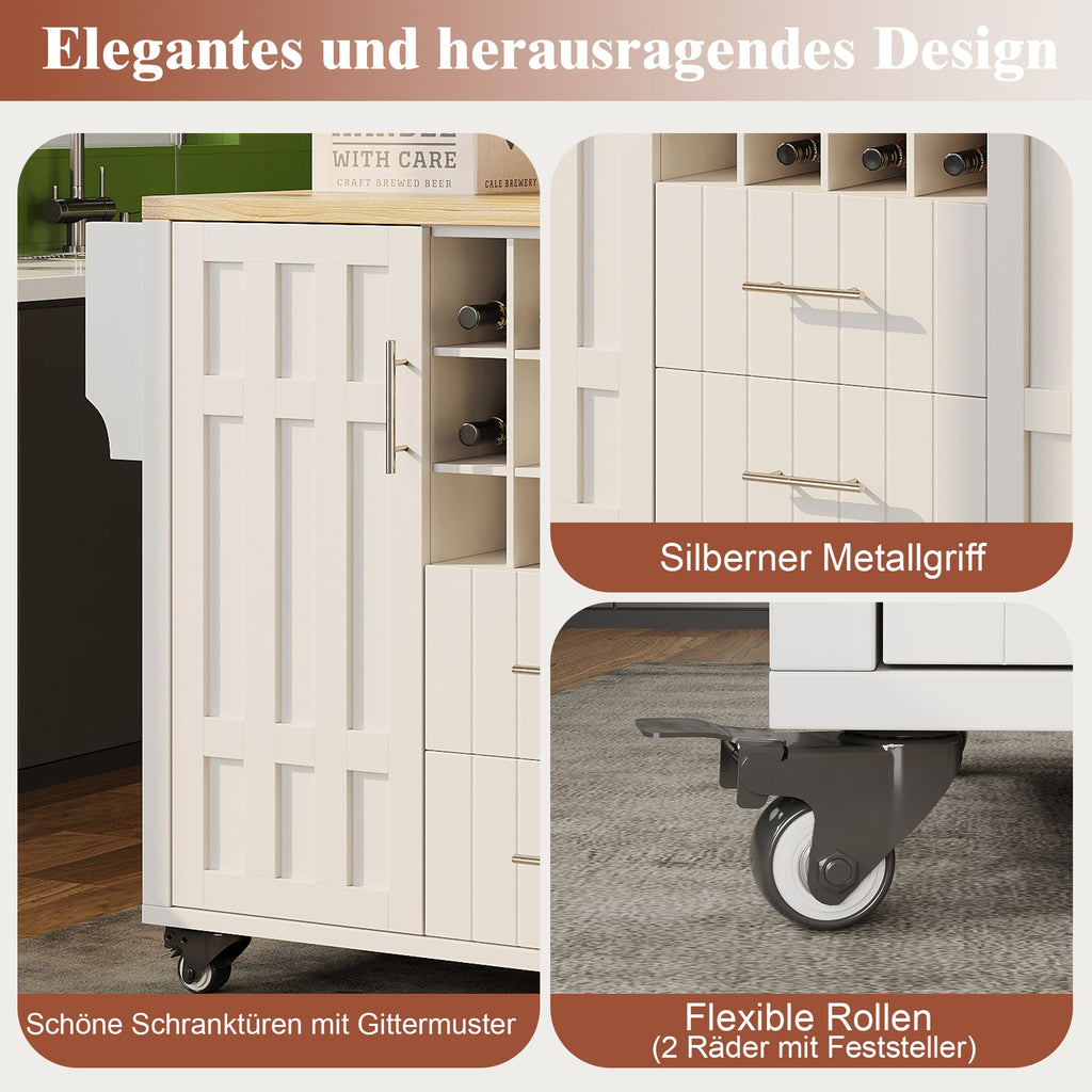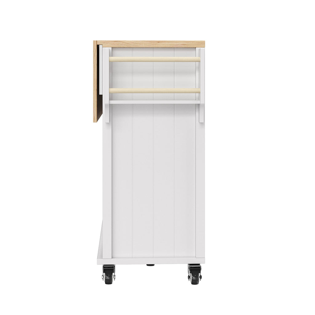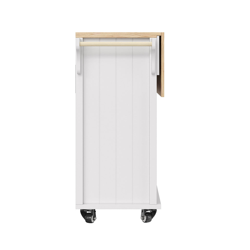 The tabletop is made of high-quality MDF with a wood grain finish, providing a beautiful and stable work surface. The handle is made of high-quality silver metal, which not only looks great but also ensures a comfortable grip and long-lasting durability. The door design focuses on aesthetics, enhancing the overall product's visual impact and user experience. Decorated with a checkerboard pattern, this ornamentation adds to the uniqueness of the product. Equipped with a towel rack, you can conveniently place towels. Wipe your hands promptly after cooking and eating to keep them dry and clean, thus improving user comfort. In addition to storing towels, some small cleaning utensils can also be hung here, thus expanding the functionality of the dining cart.