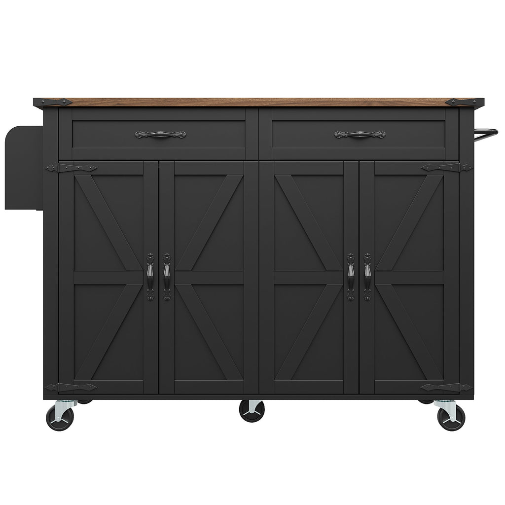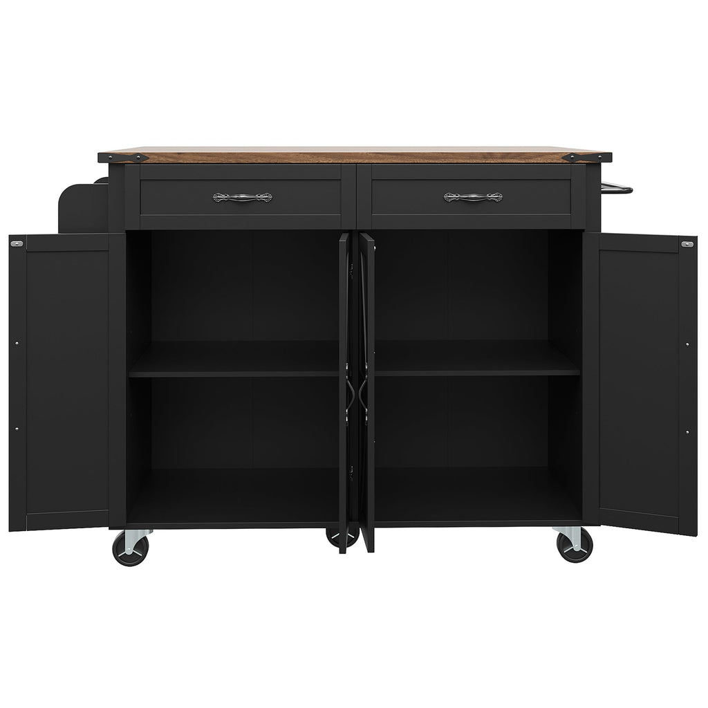 Kitchen Island, Serving Cart with Extendable Worktop, 4 Doors & 2 Drawers, Wood Grain Black