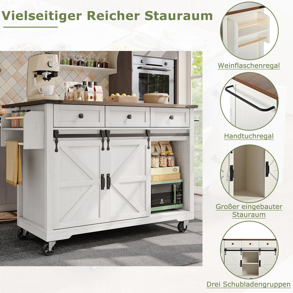 Kitchen Island, Serving Cart with Extendable Worktop & Storage, Wood Grain