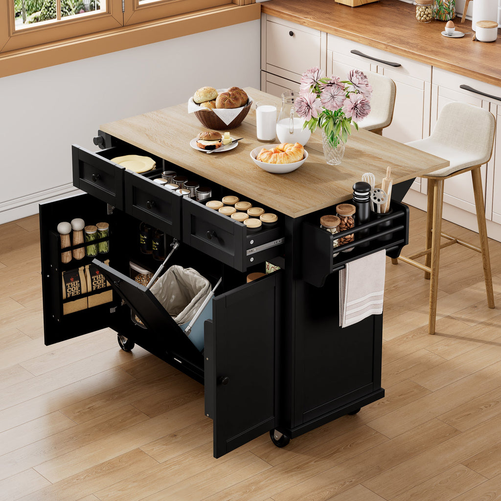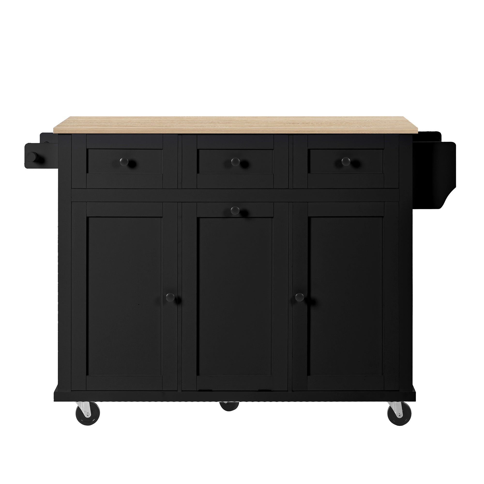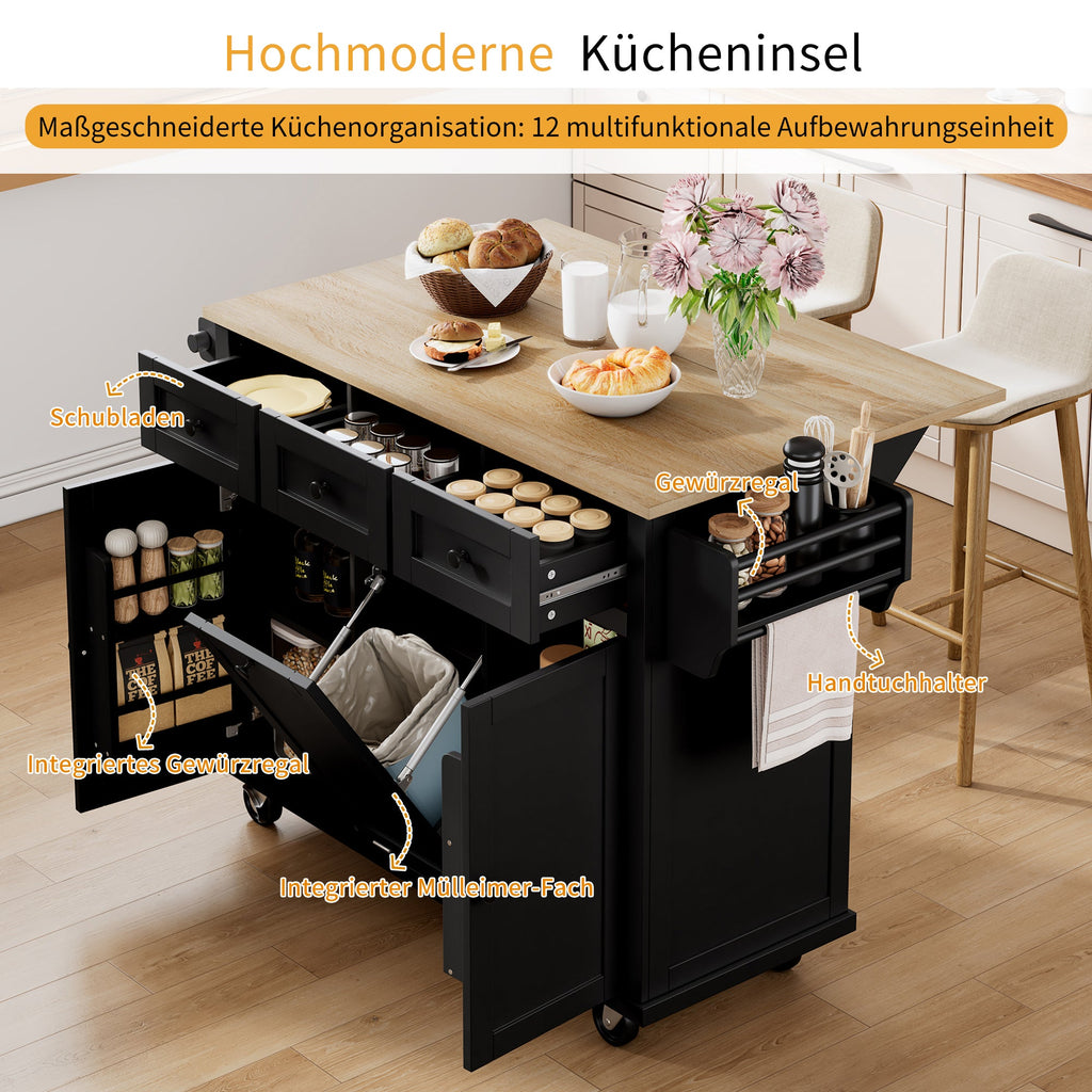 Kitchen Island with Wheels, Extendable Dining & Drawers, Black