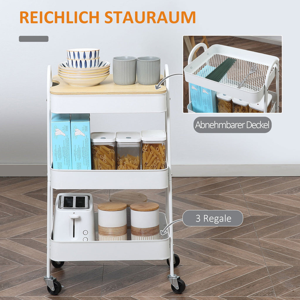 Three shelves and a lid: The three shelves offer ample space for storing food or utensils. The lid transforms your serving cart into a highly practical helper, providing an additional storage level or a writing surface.