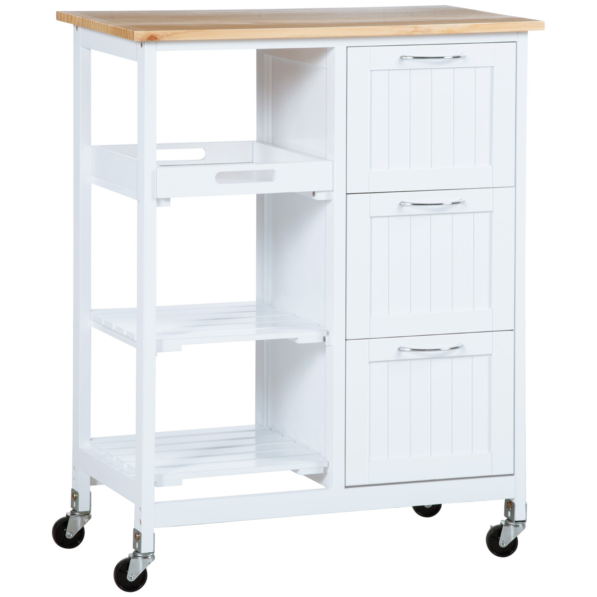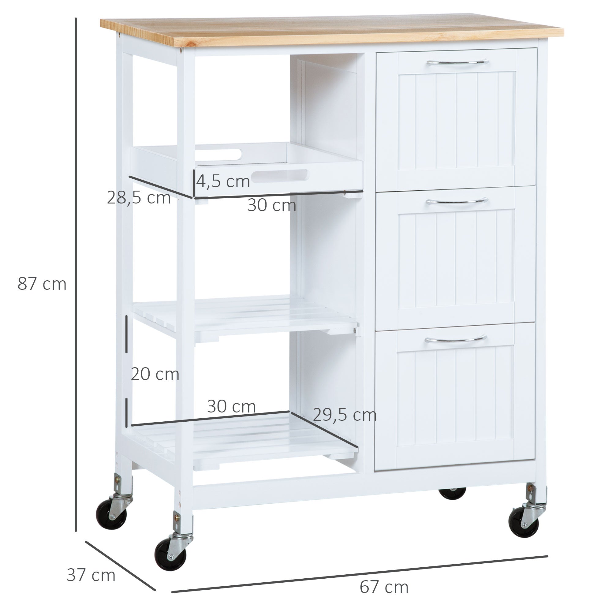 Kitchen Trolley Serving Cart 3 Drawers 3 Shelves Worktop, White