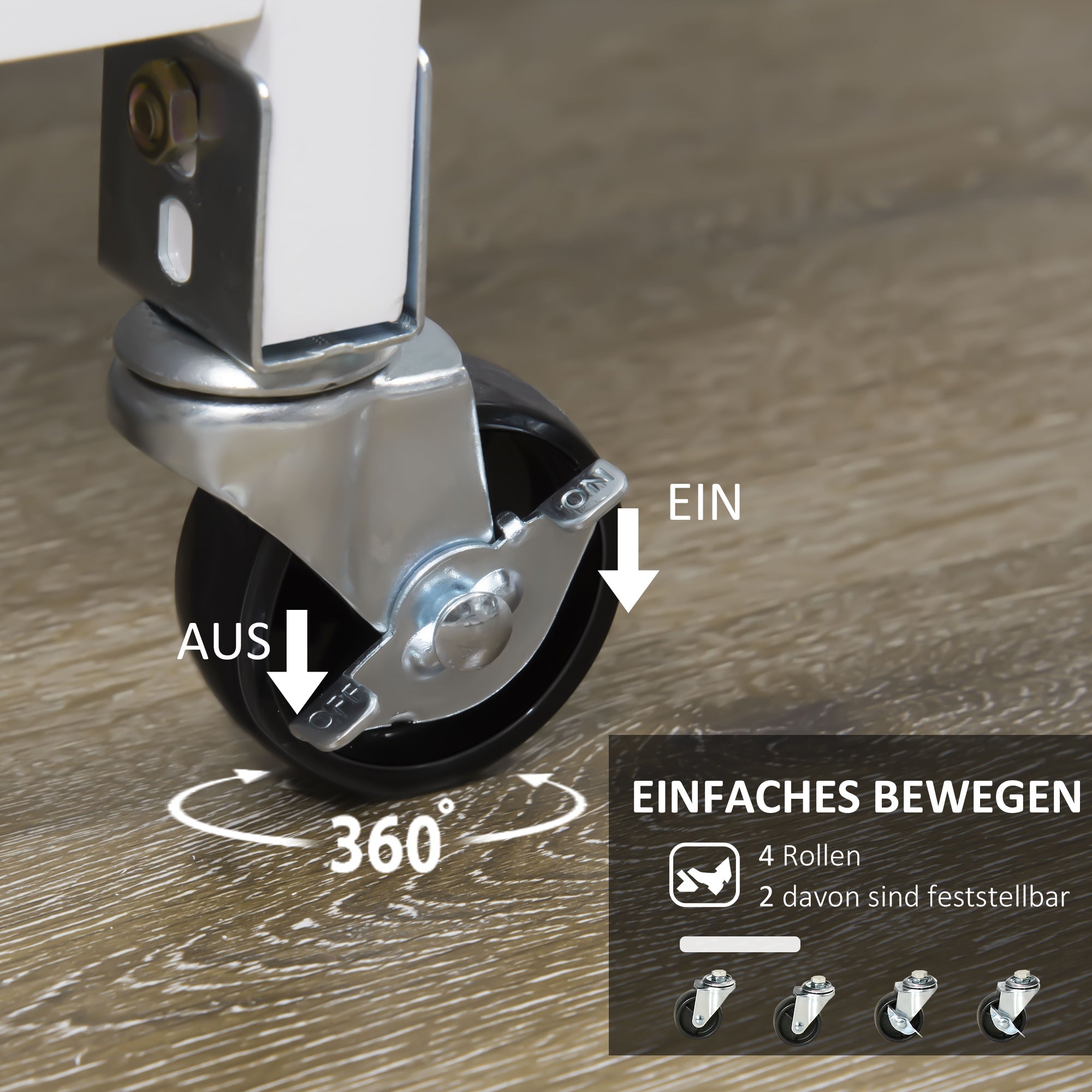 With three large drawers, a removable tray, two open shelves, and a wide worktop, this kitchen cart on wheels offers plenty of storage space and helps keep your home organized.