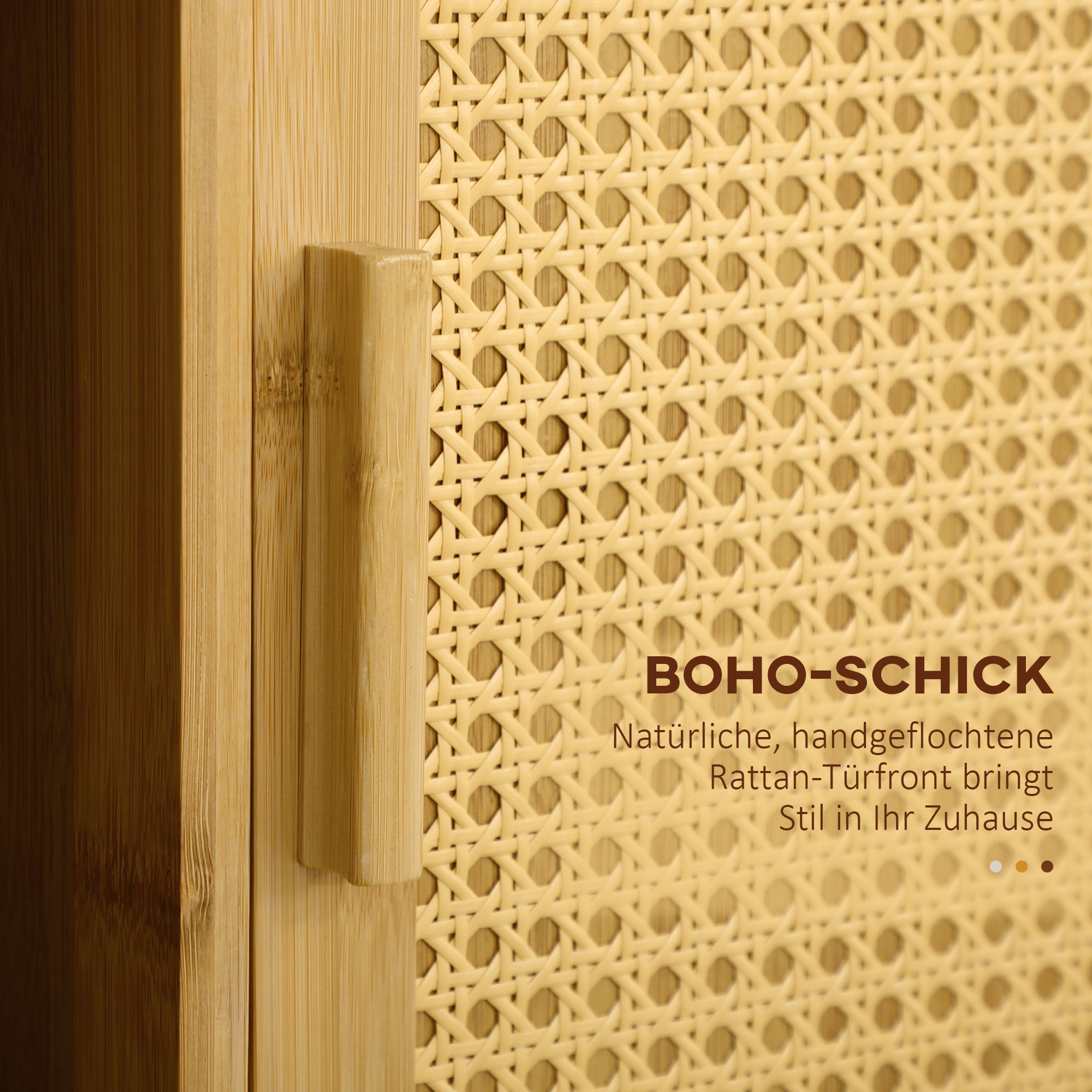 This kitchen island with storage is a beautiful piece of furniture in a modern boho style. With its natural color and rattan doors, it is right on trend. No matter where you place it, it will blend seamlessly into your home decor.