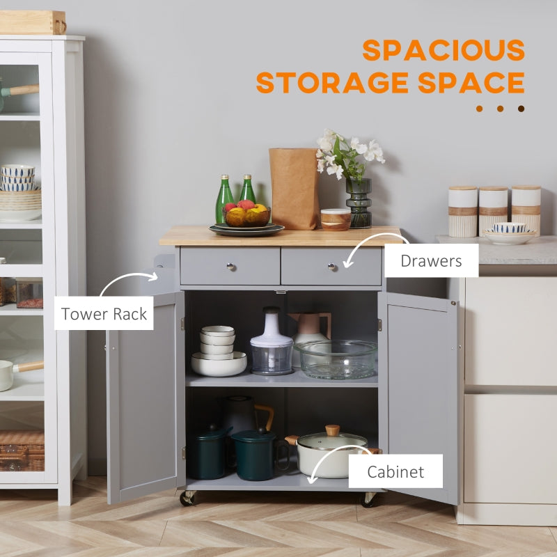 Rolling Kitchen Island, Serving Cart w/ Rubber Wood Top, Towel Rack & Storage, Grey