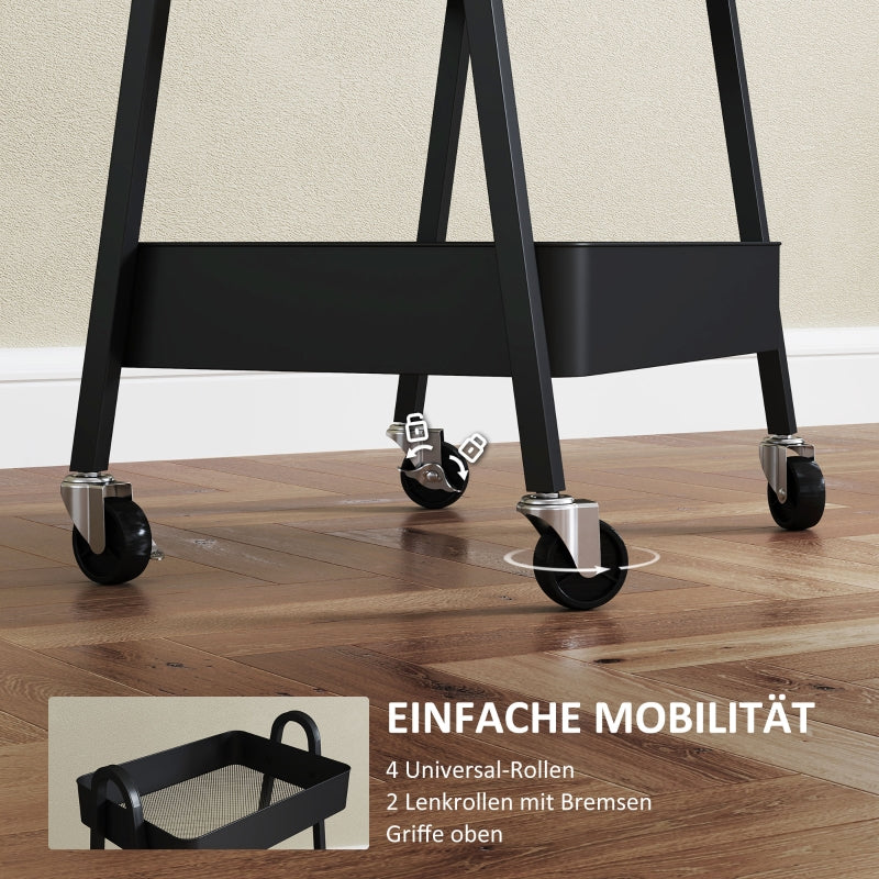 Serving Cart with 3 Levels, Wheels & Brake, Black