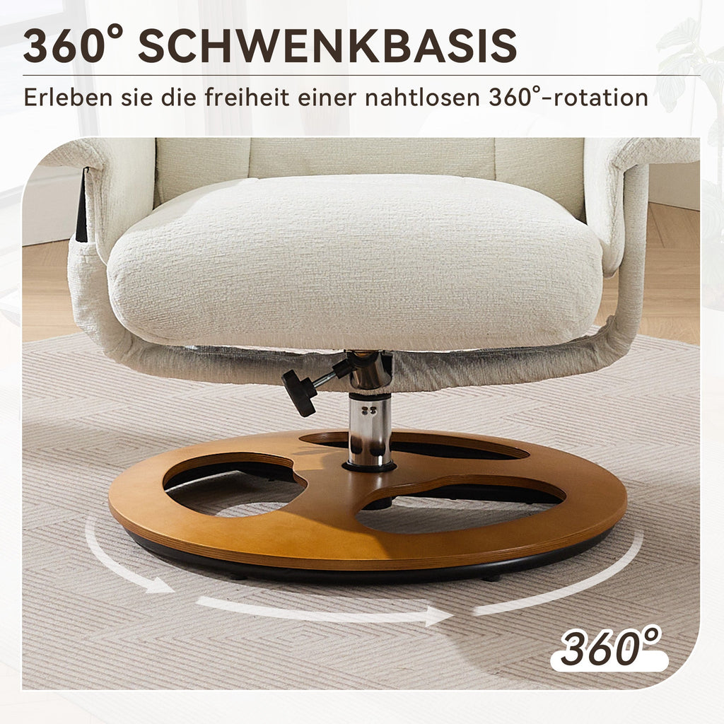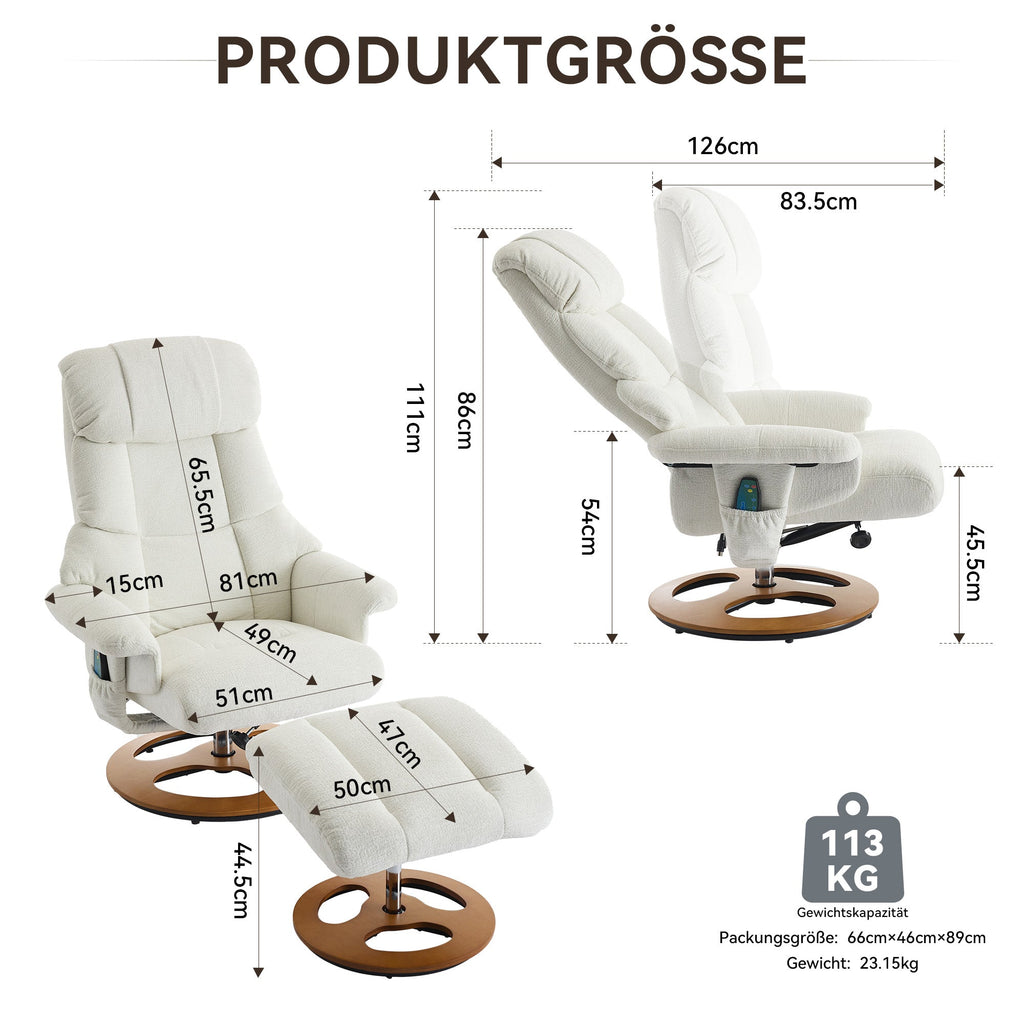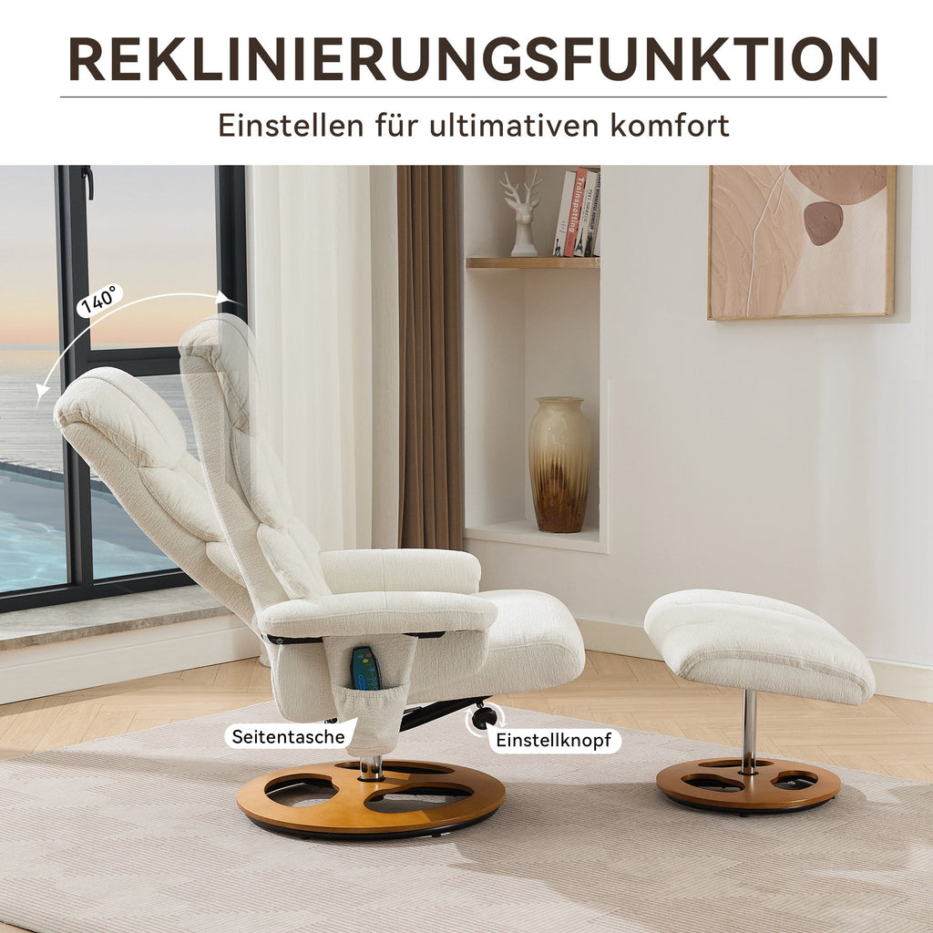 025 Recliner Chair with Massage, Heat, Reclining, Footstool, 360° Rotatable, Chenille Fabric White
